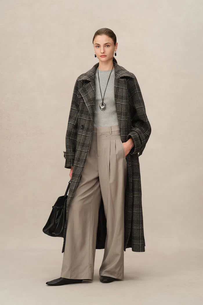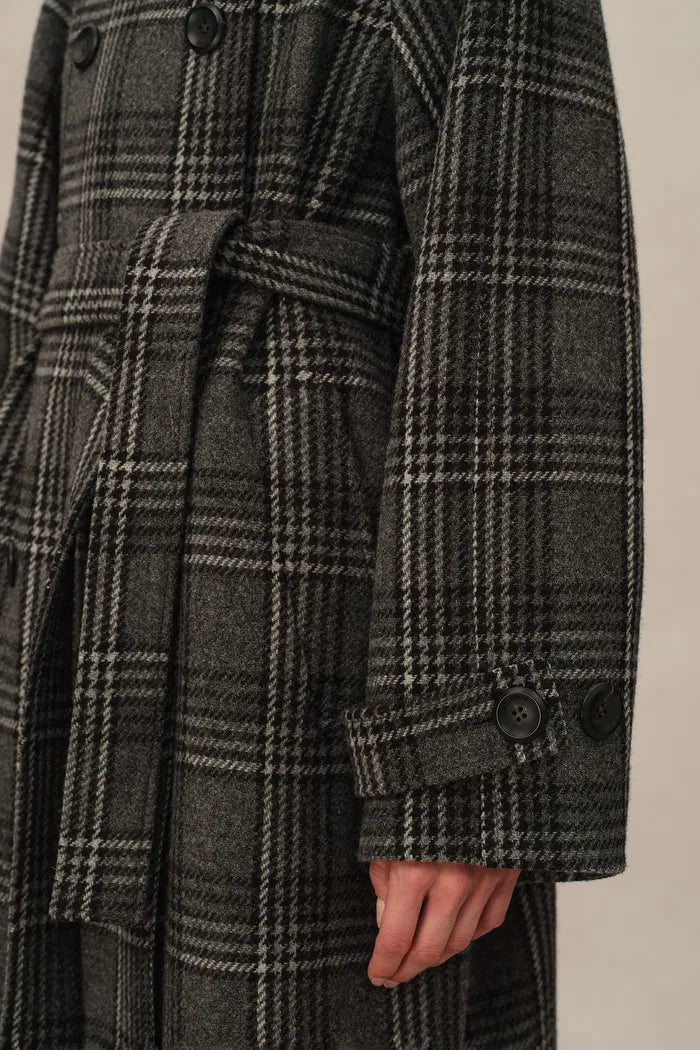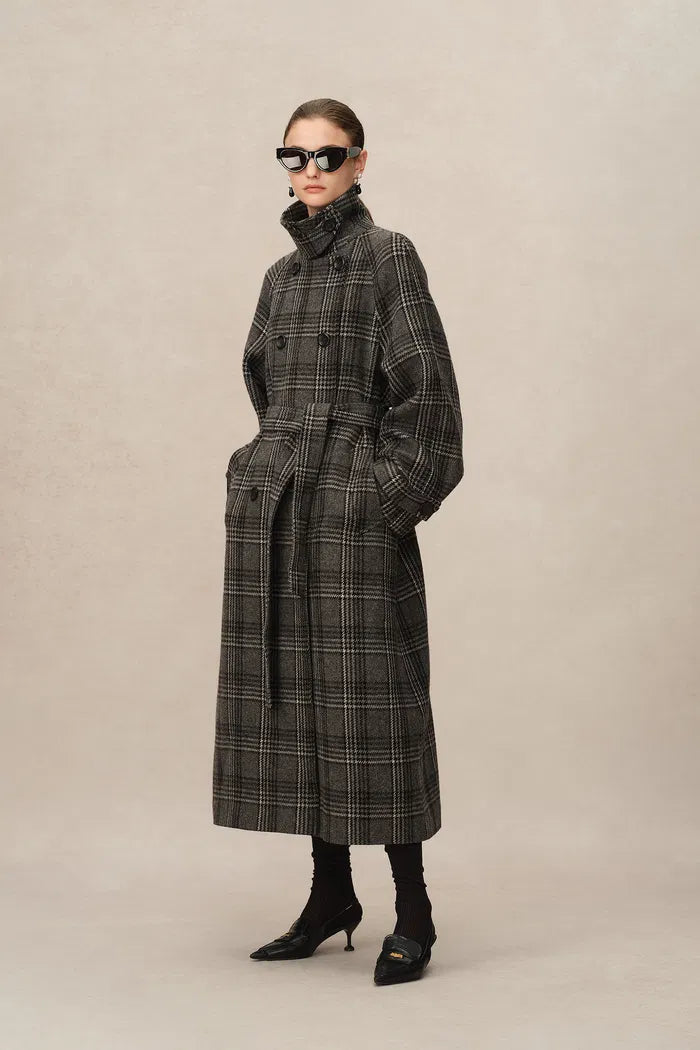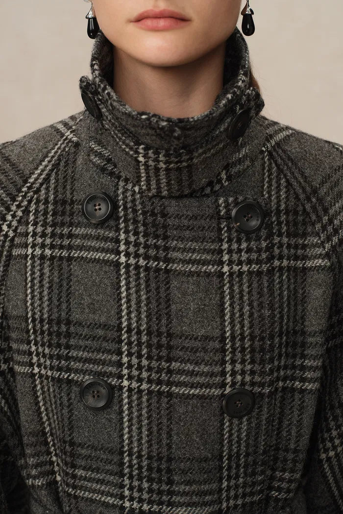 Edit Convertible Funnel Neck Coat in Welsh Checkered Box Wool