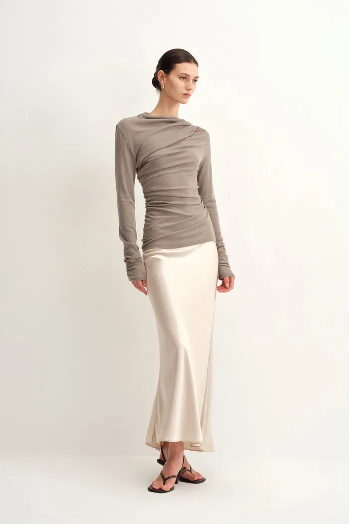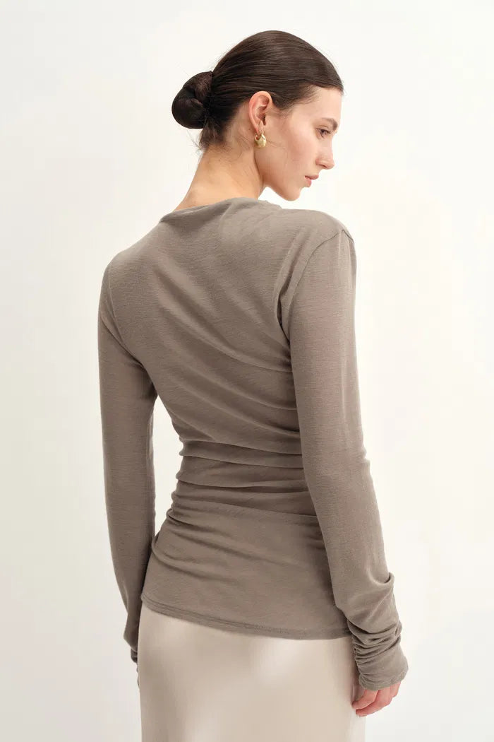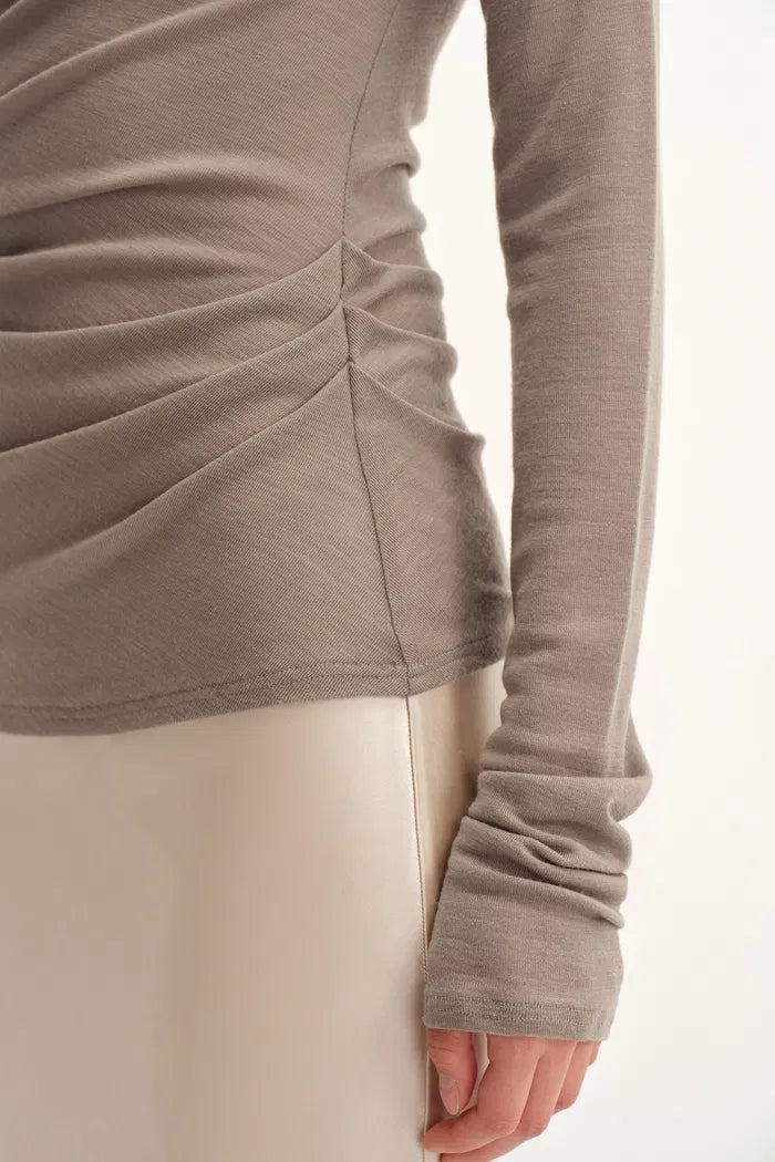 Edith Sculpted Look Gathering Long Sleeve Top in Merino Wool Knit