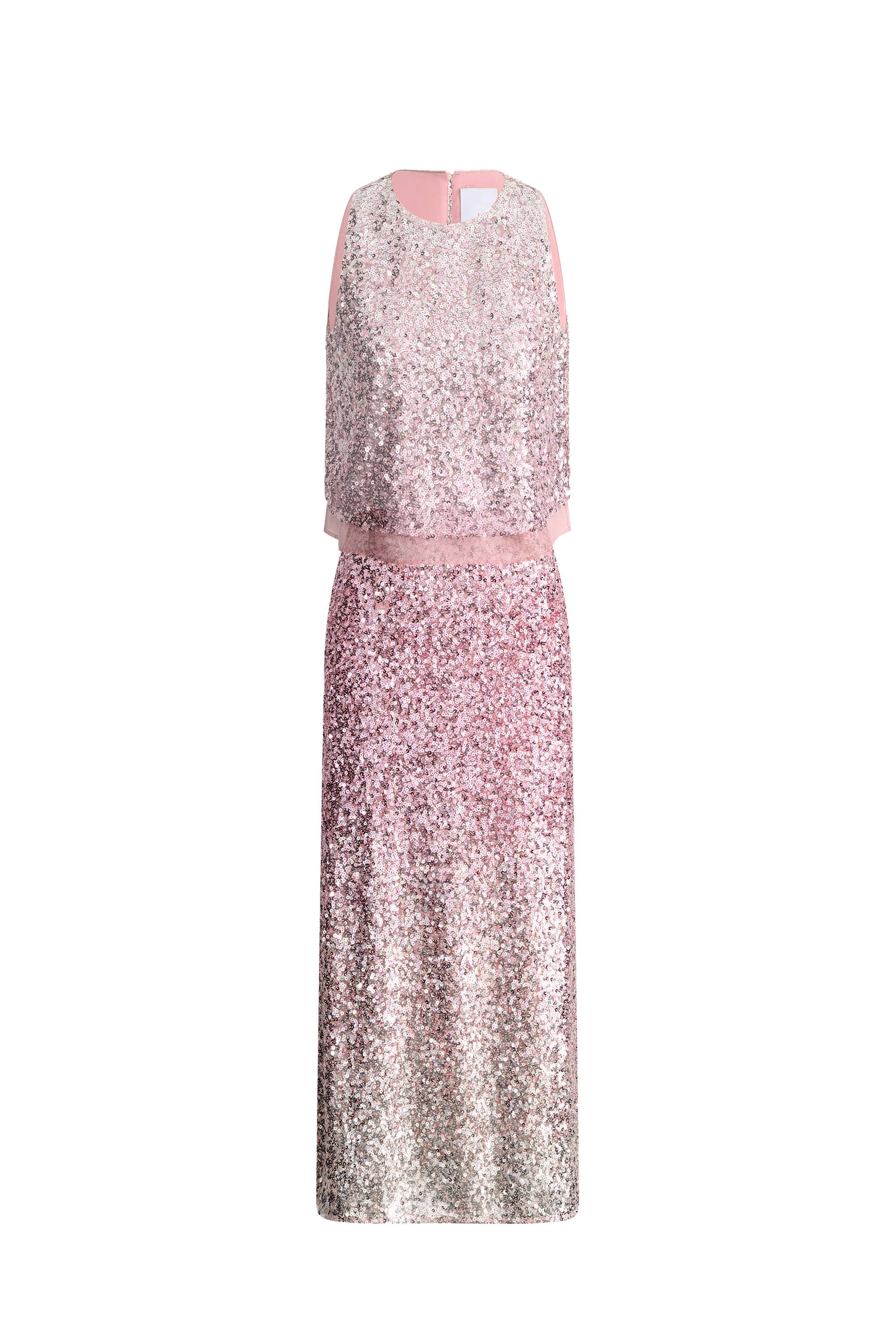 Eleanor Ombre Sleeveless Vest Top and Skirt Matching Set in Full Sequin Embroidery