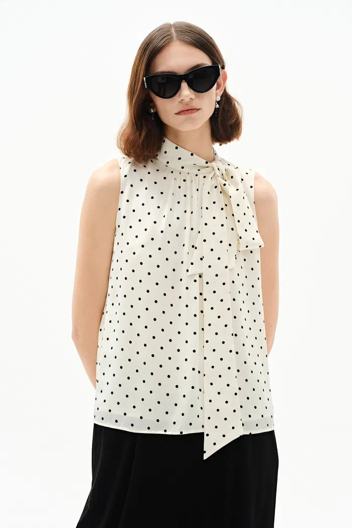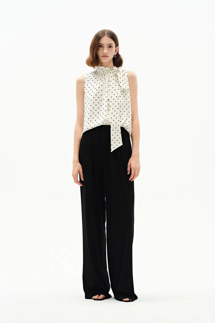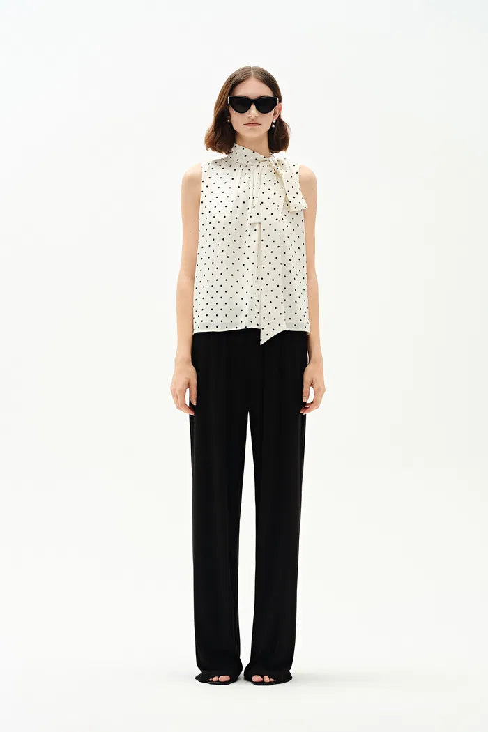 Elen Polka Dot Halter Neck Sleeveless Top in Mulberry Silk