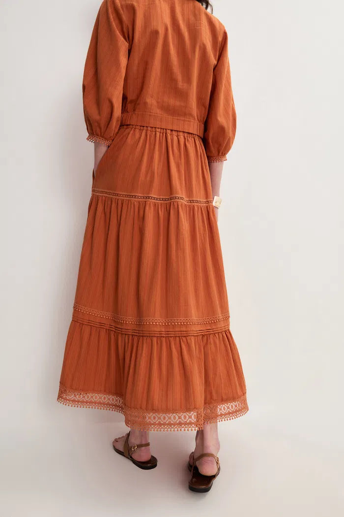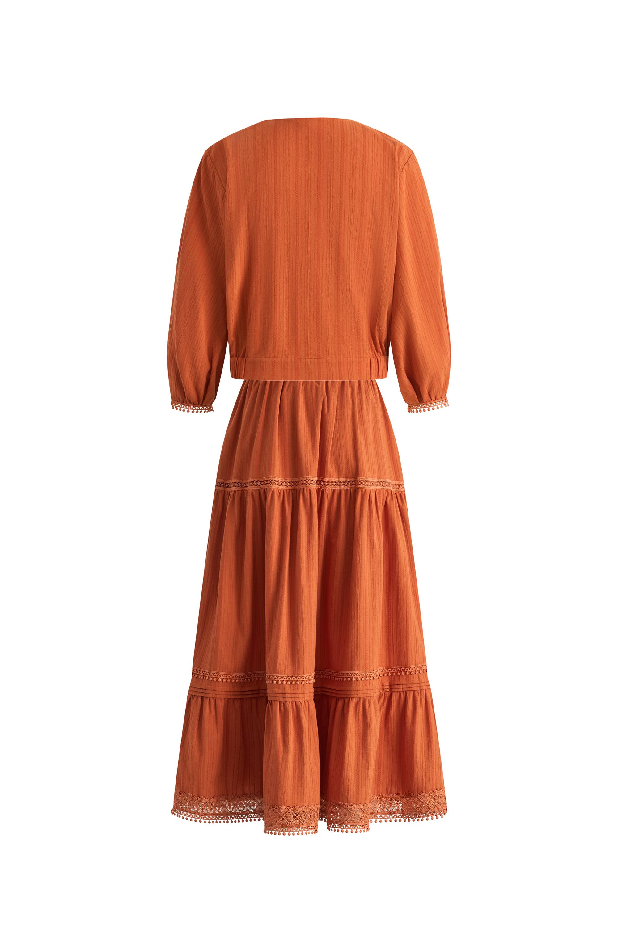 Elli Embroidery Puff Sleeve Blouse Top and Maxi Skirt Matching Set in Cotton