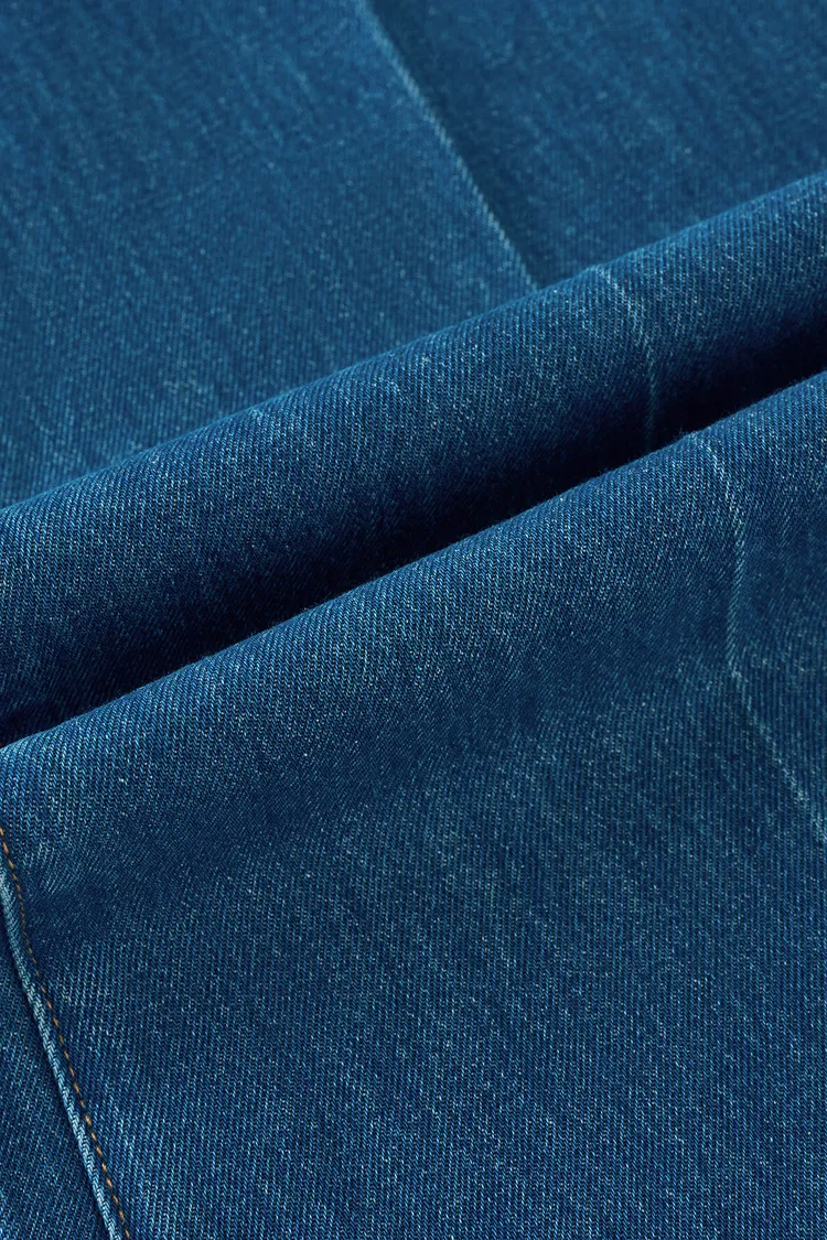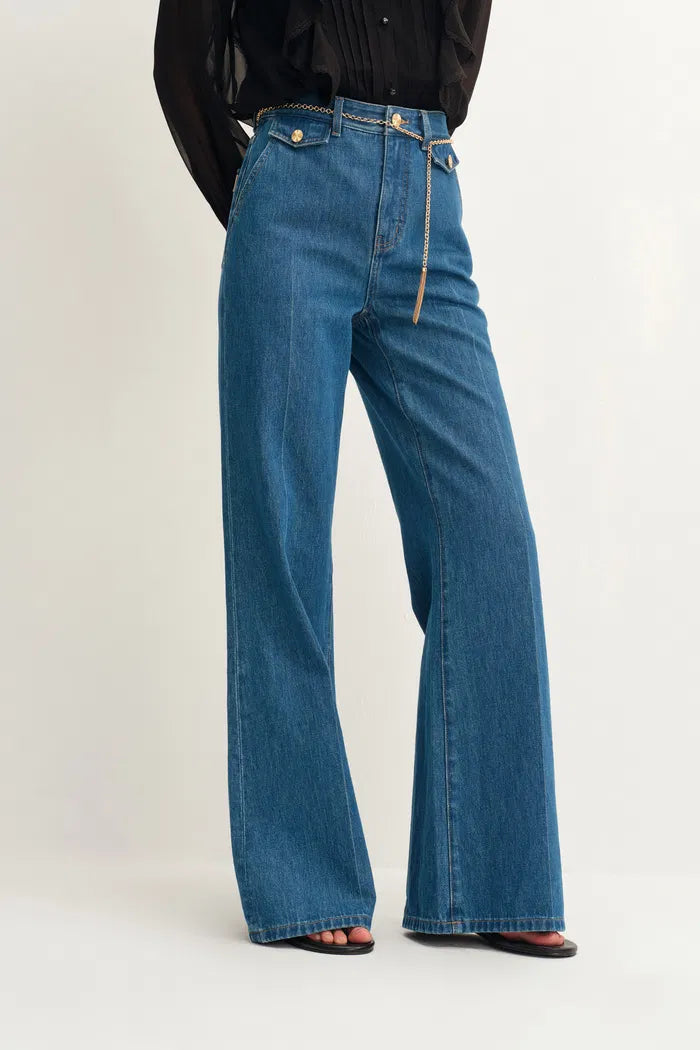 Elly Belted Teal Flared Jeans in Cotton Denim