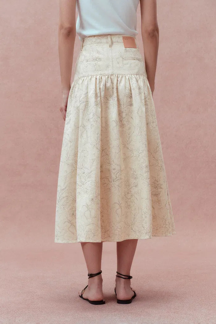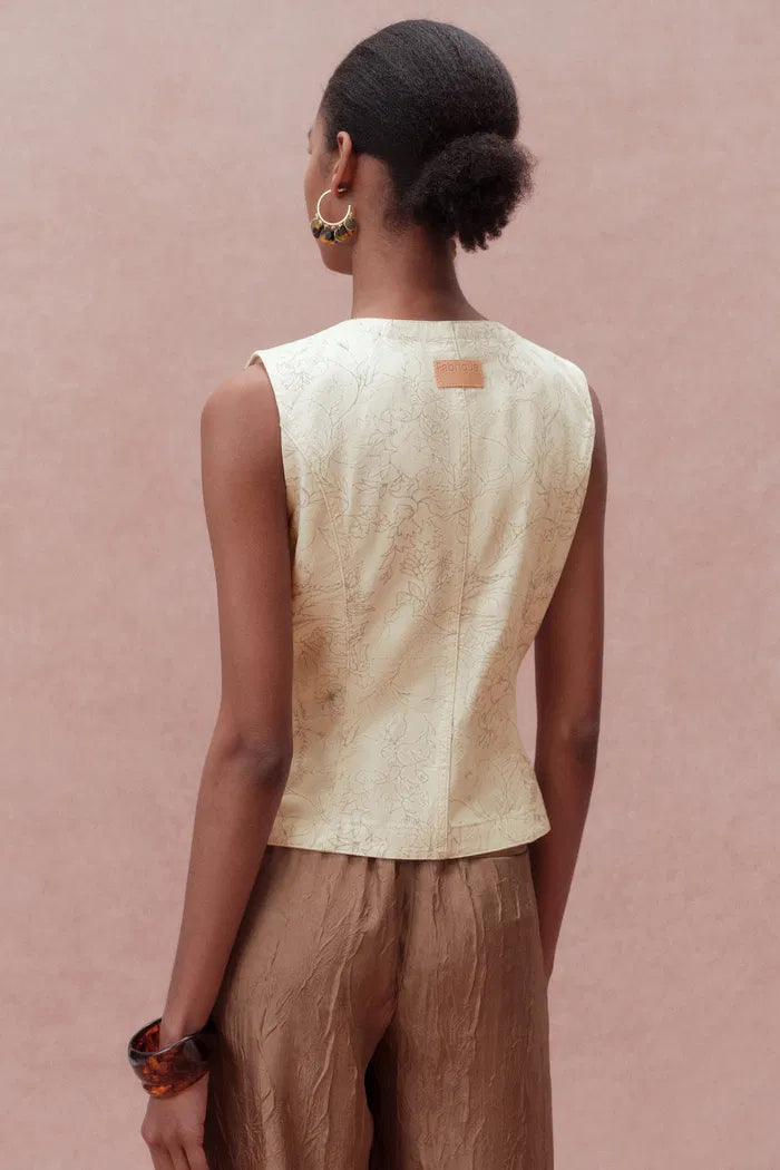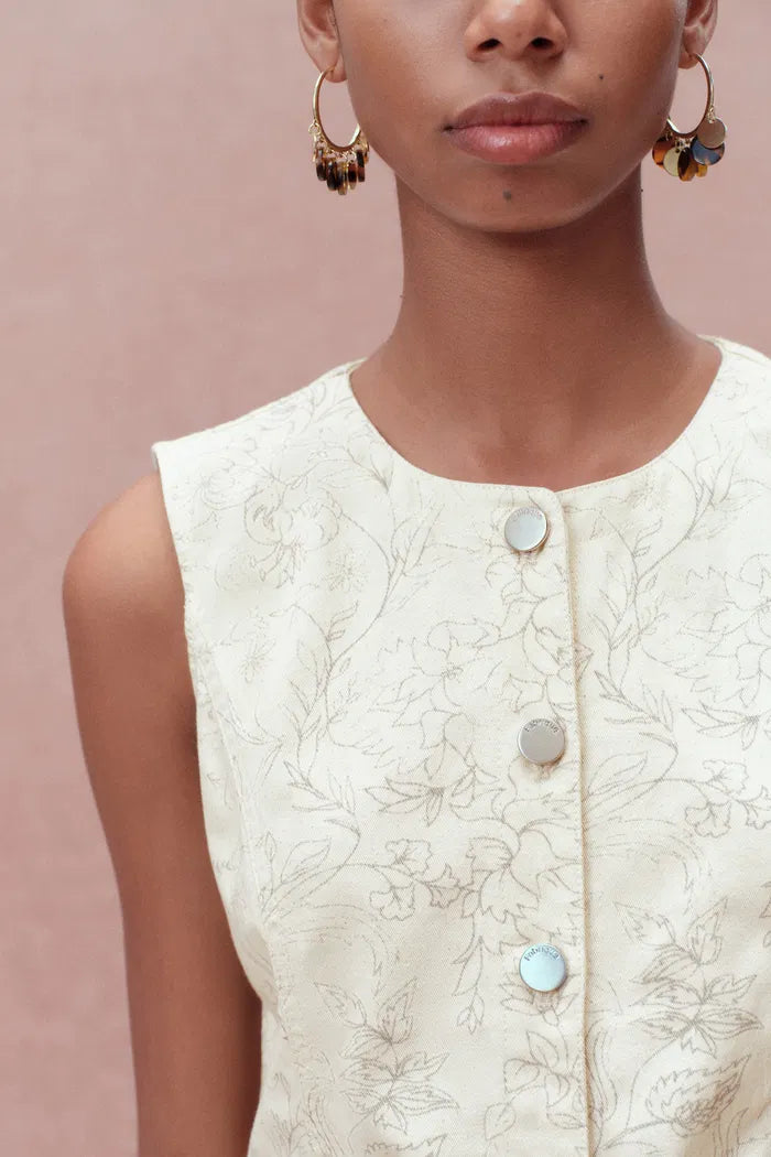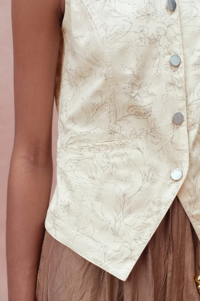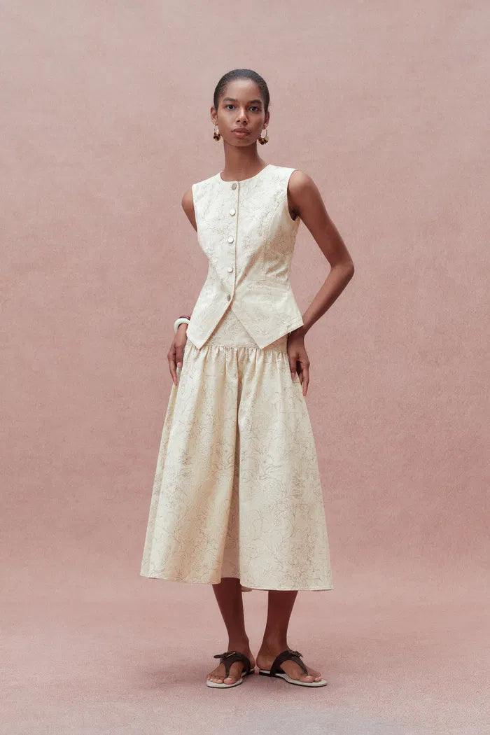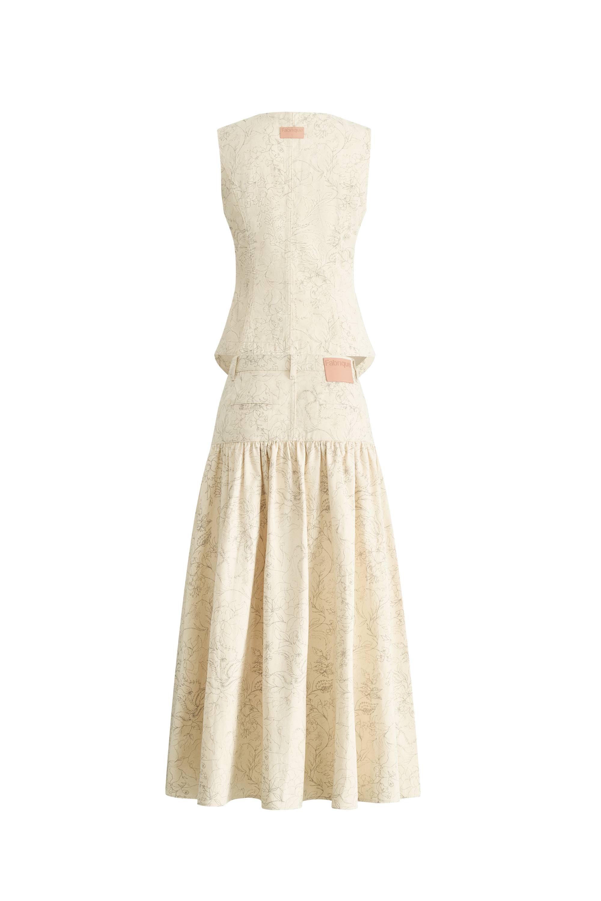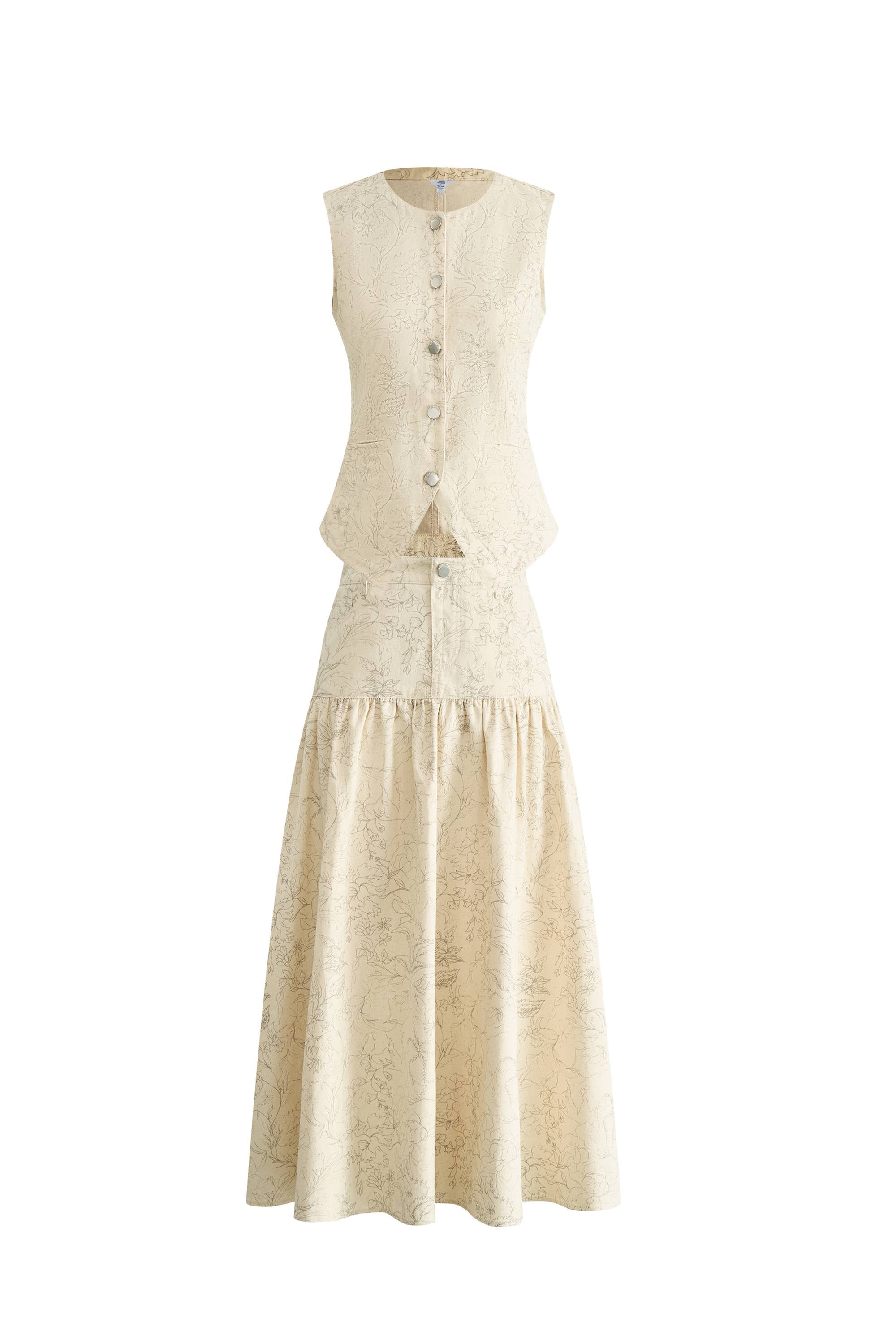 Elodie Cinched Denim Vest Top and Skirt Matching Set in Cottonseed Hull Denim