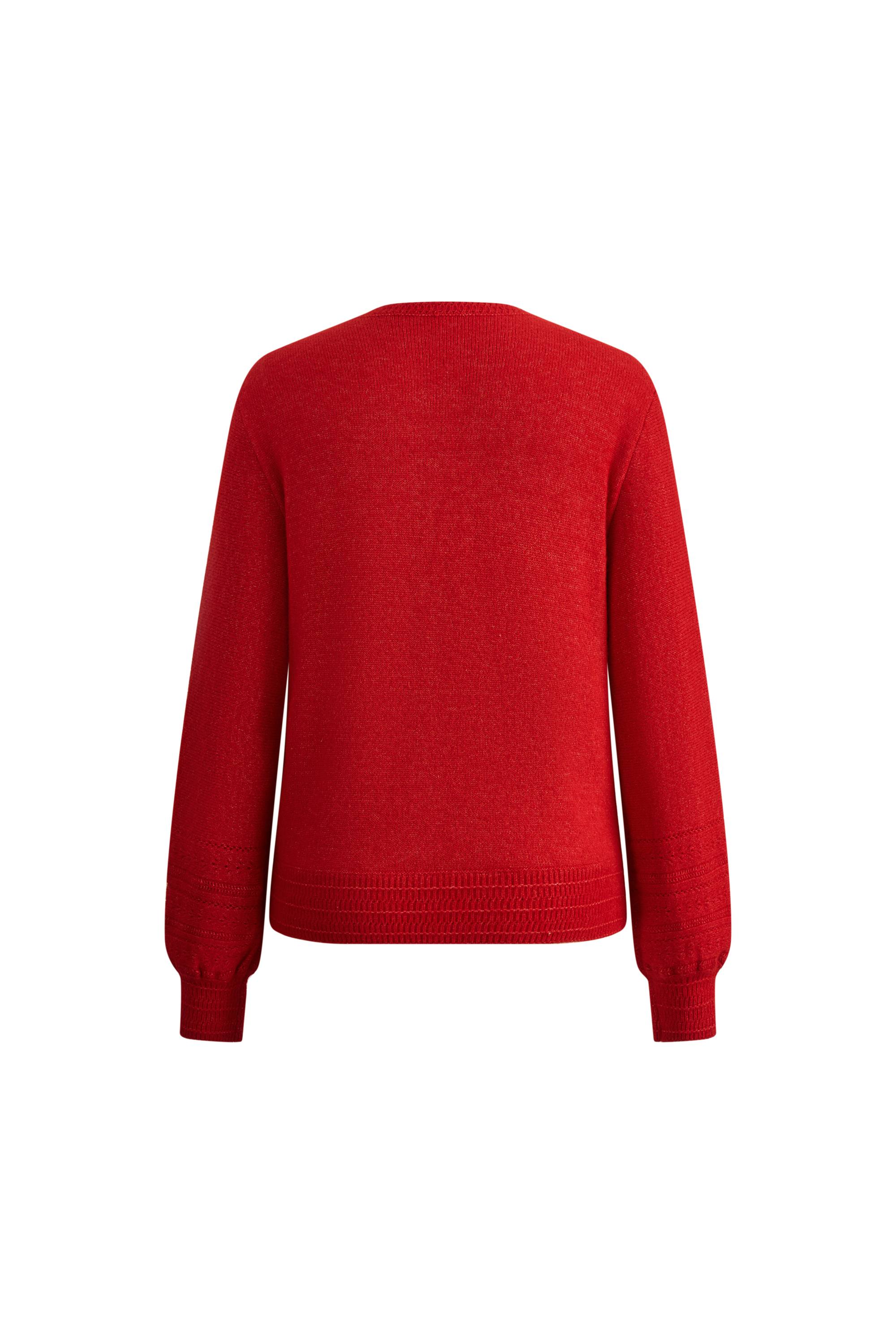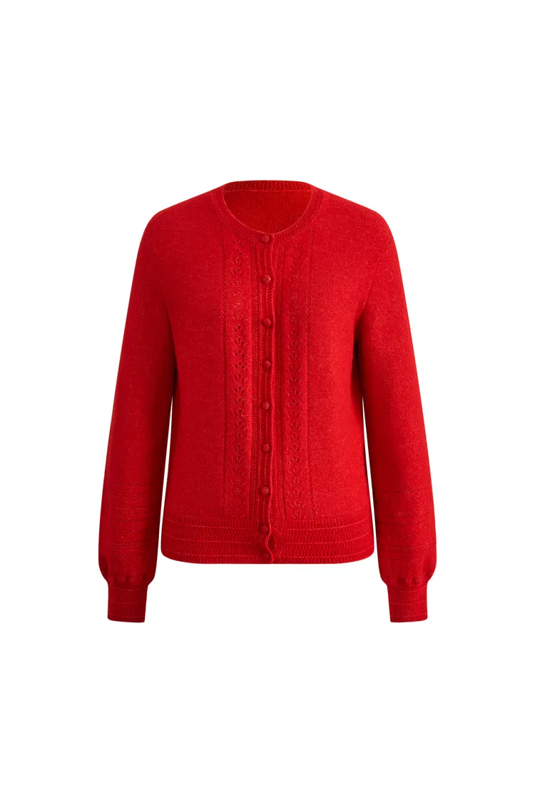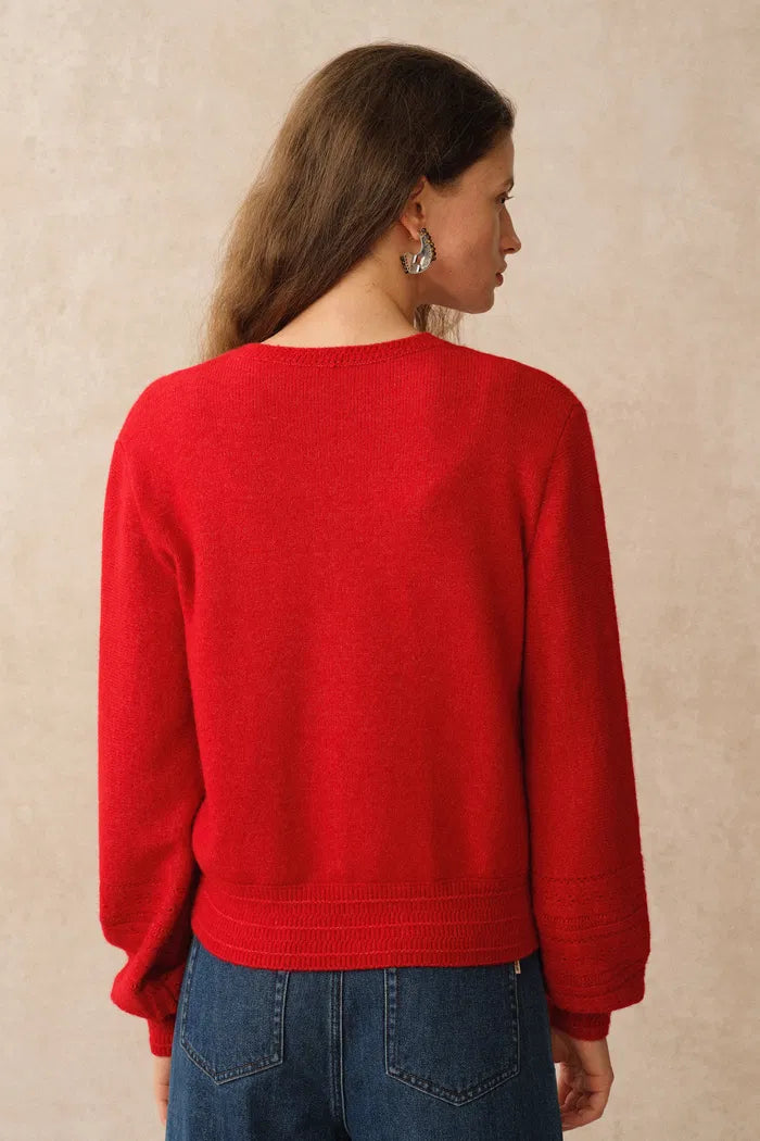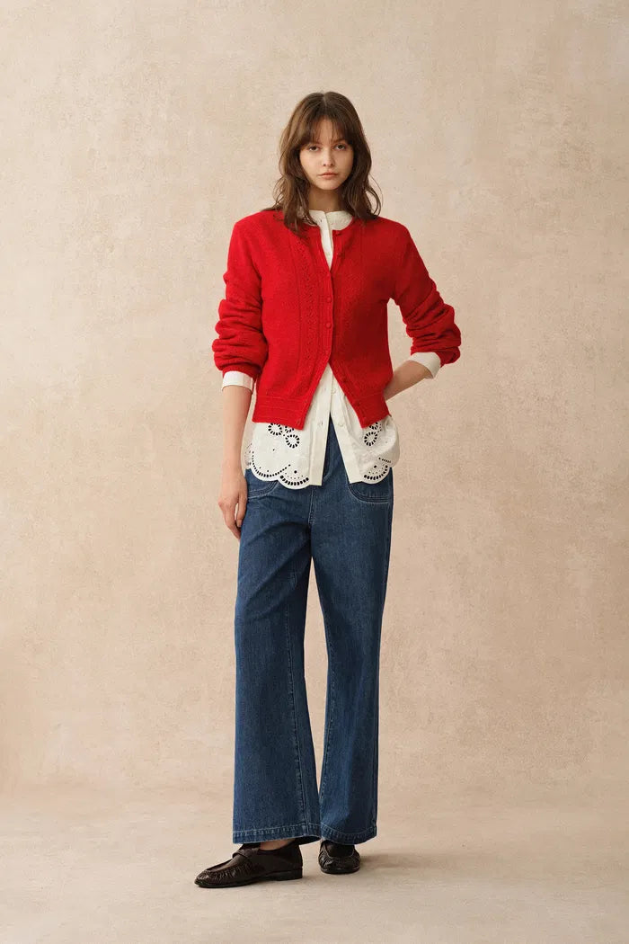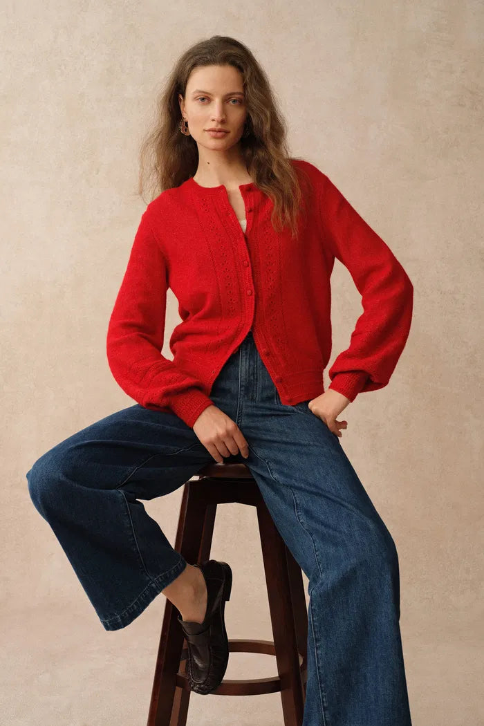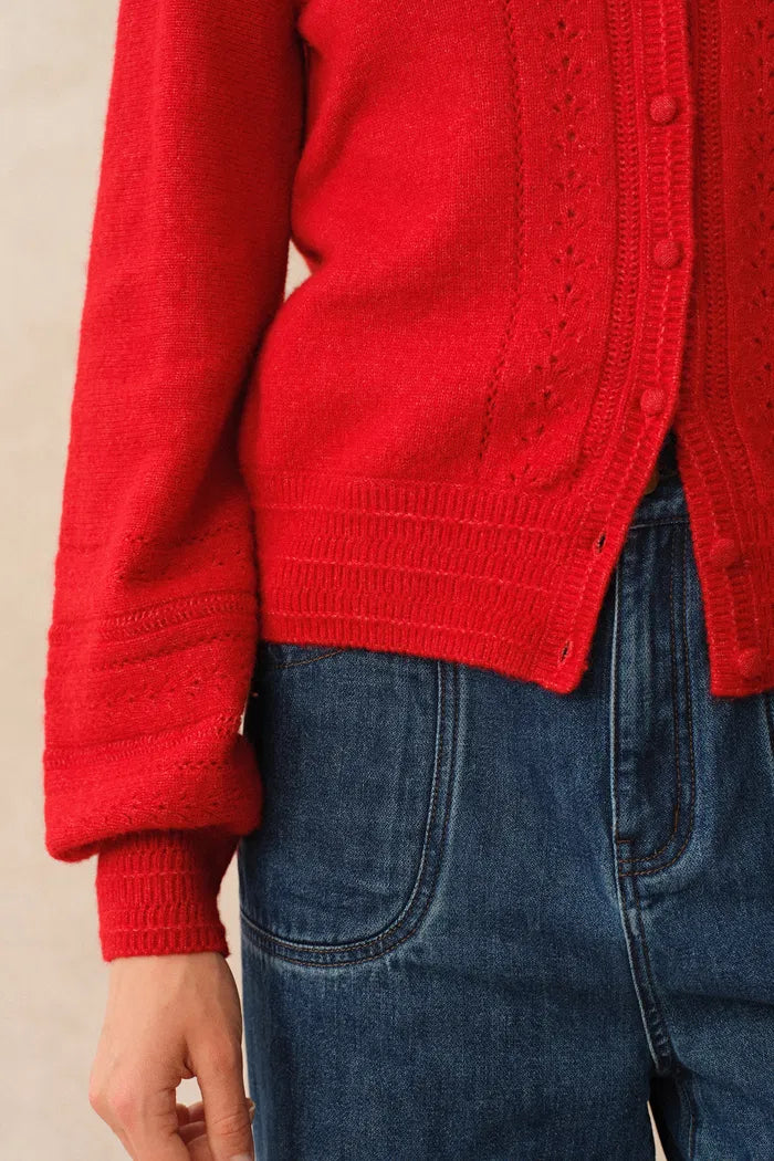 Elodie Floral Rib Hem French Cardigan in Merino Cashmere Knit