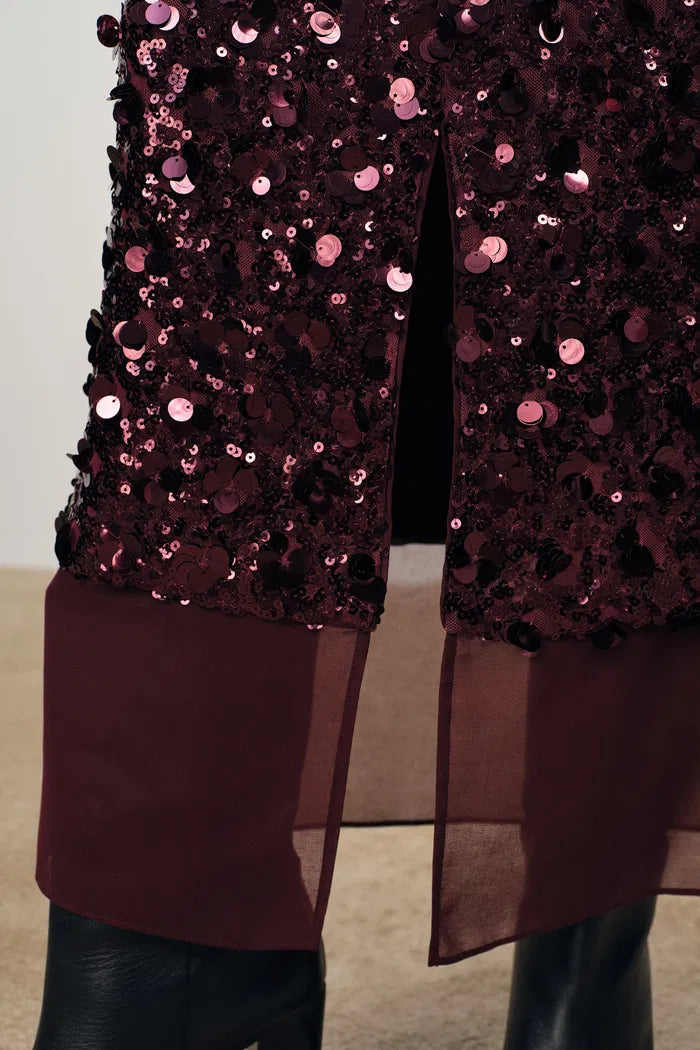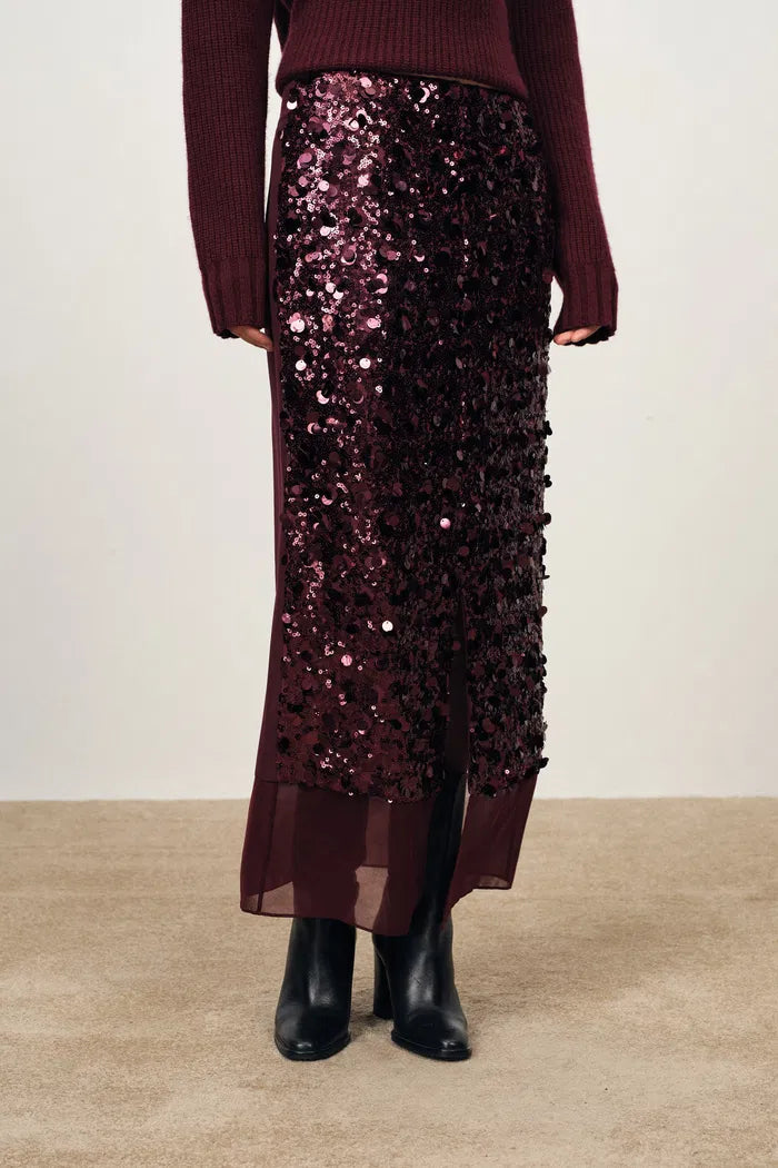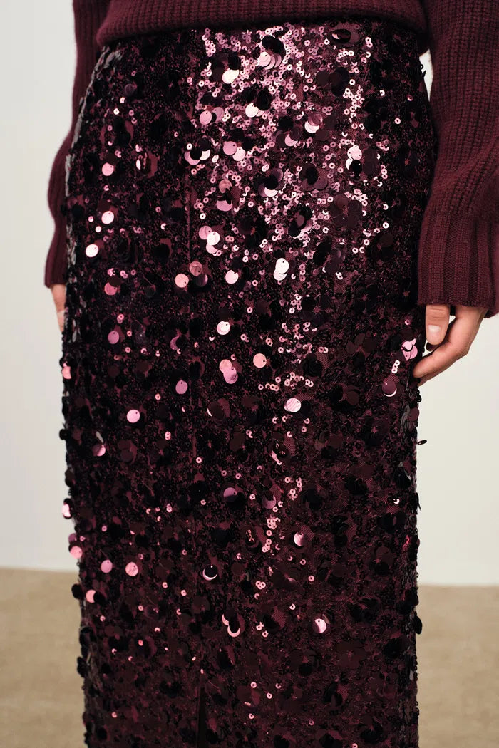 Elodie Hand-Applied Sequin Mesh Midi Skirt in Full Sequin