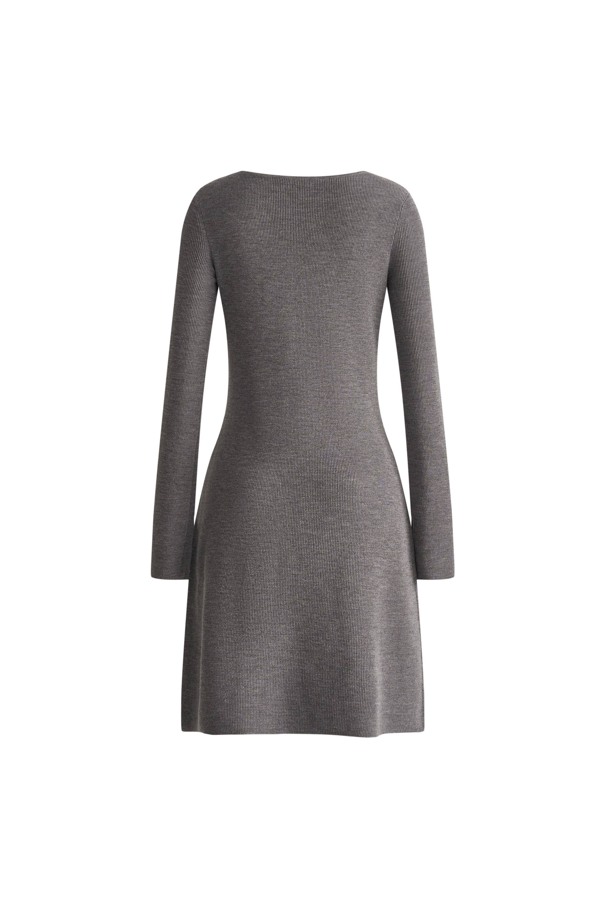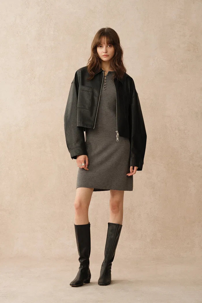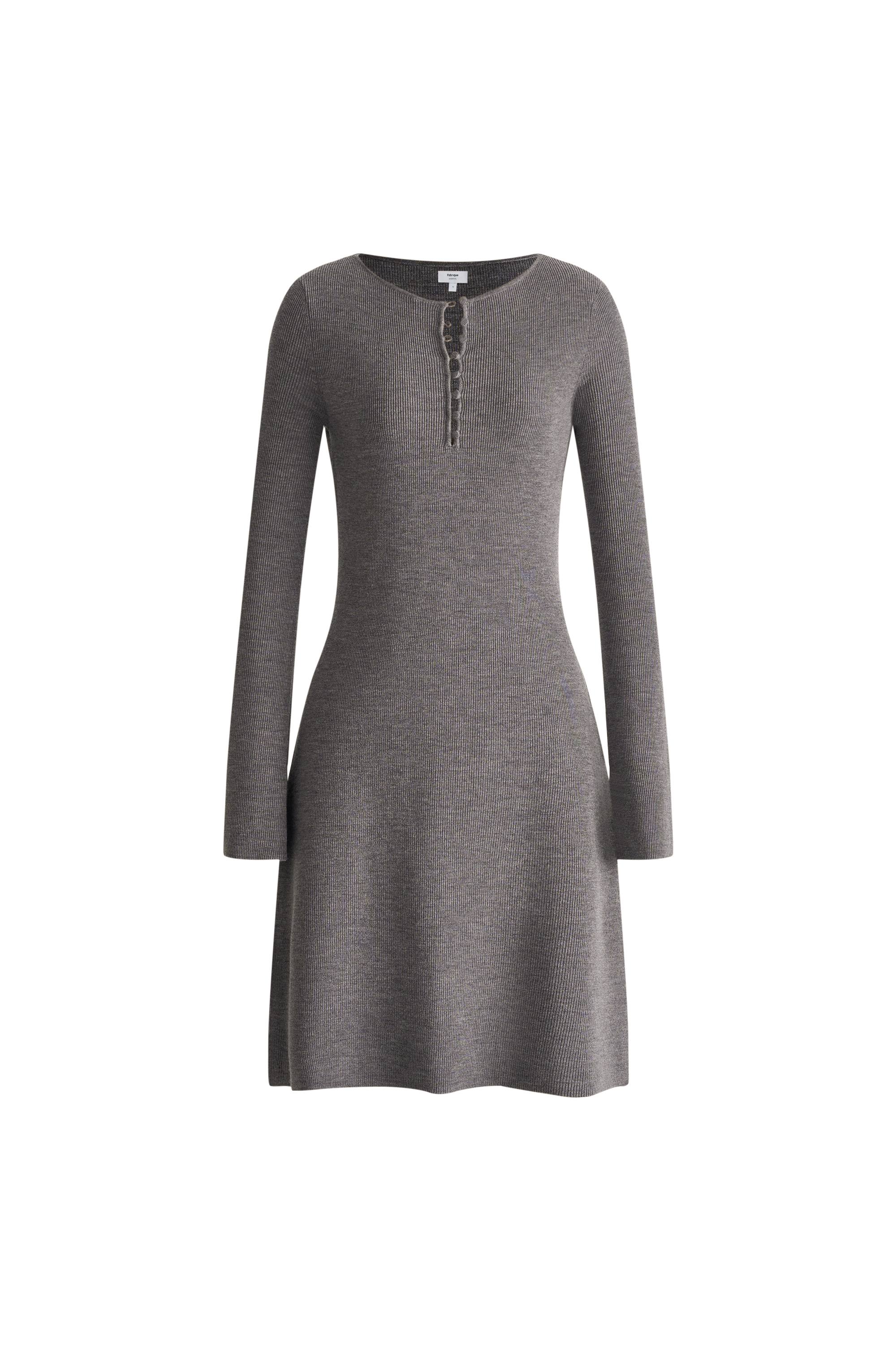 Emily Grey Henley Collar Fitted Short Dress in Merino Wool Knit
