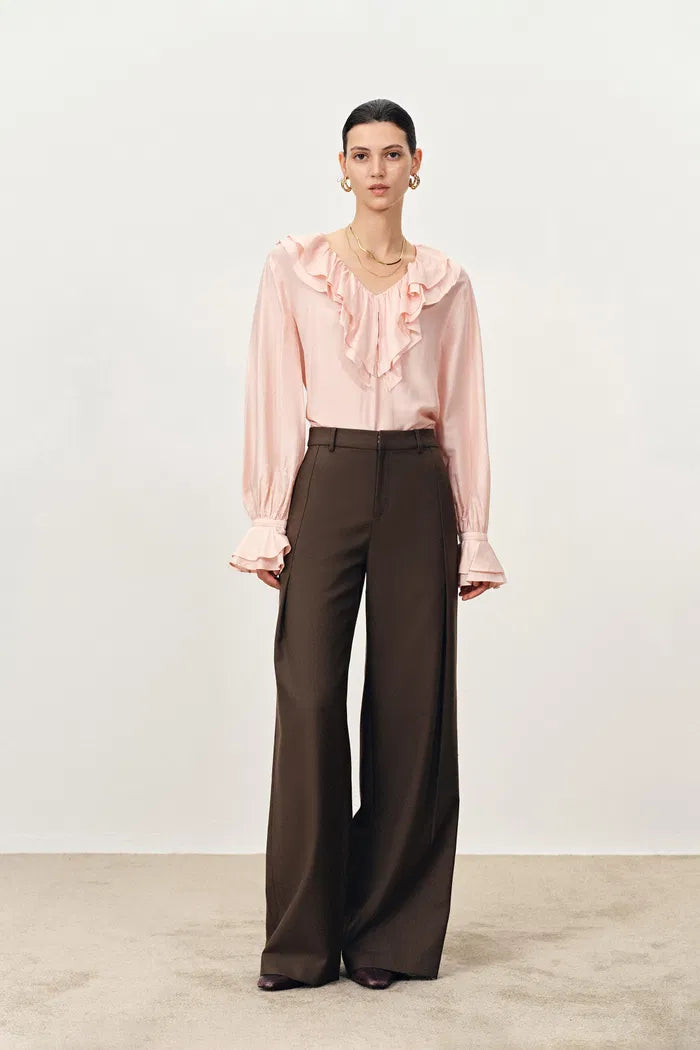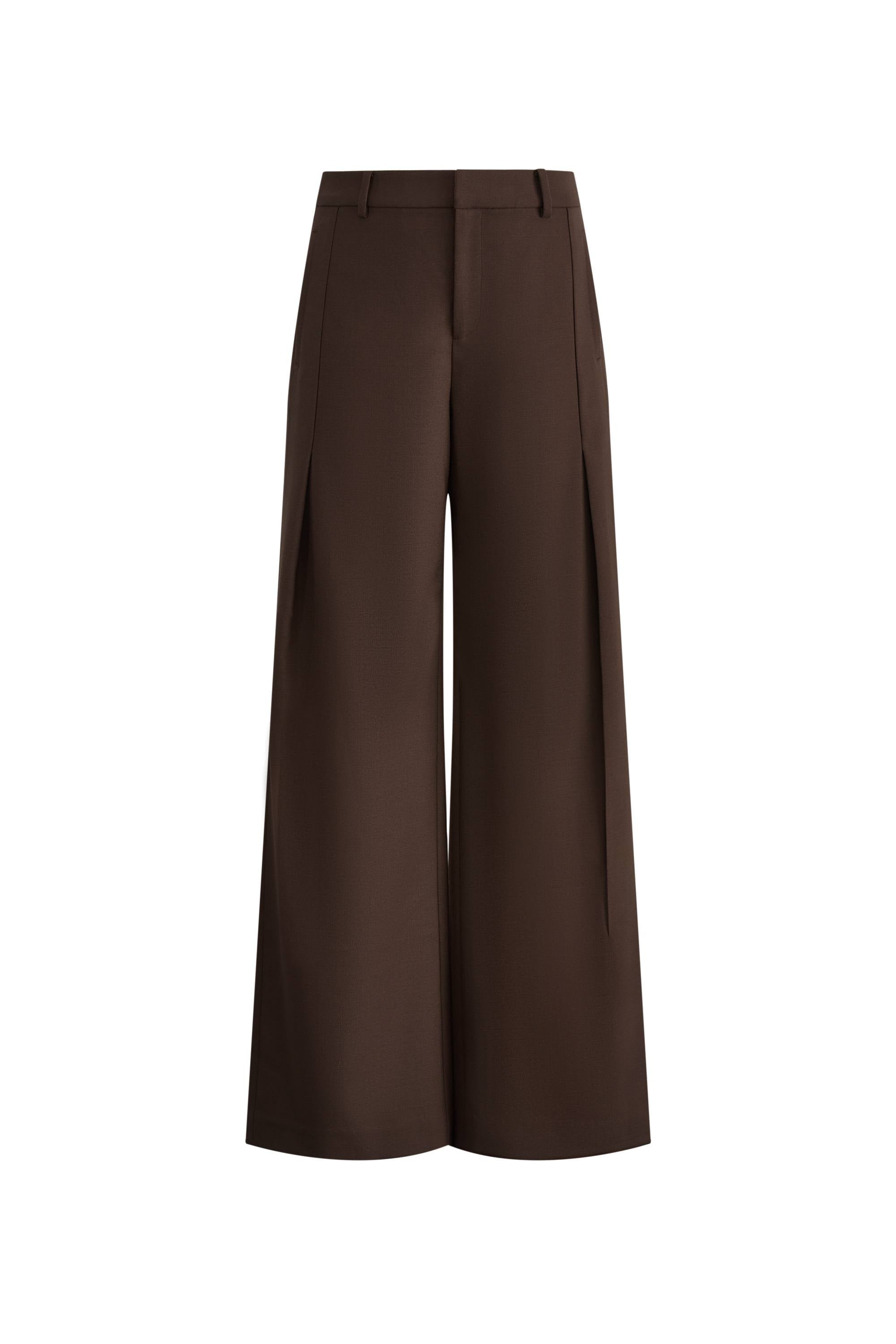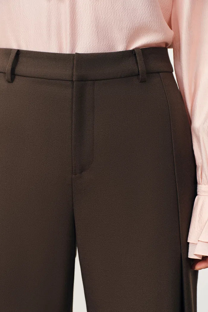 Emma Pleat Front Straight Leg Track Pants in Fine Wool Suiting