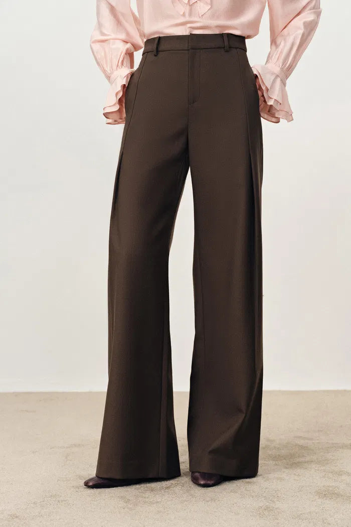 Emma Pleat Front Straight Leg Track Pants in Fine Wool Suiting