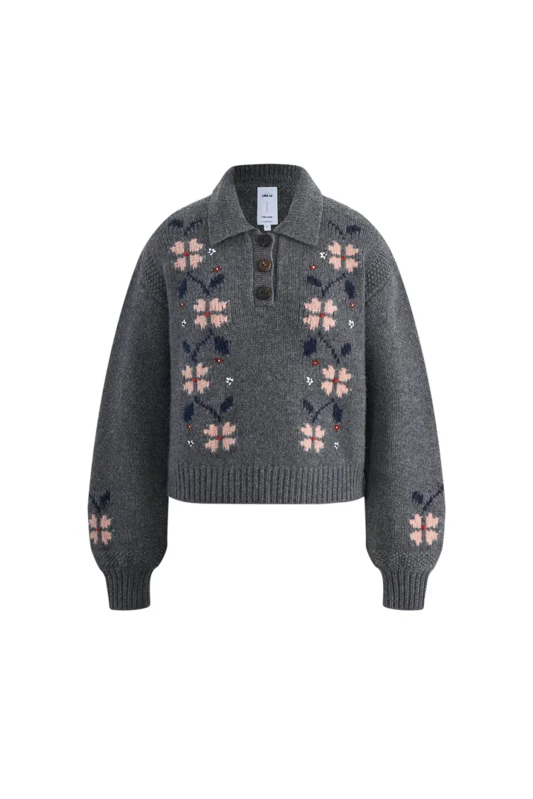 Fika Floral Knit Polo Shirt in Merino Wool Knit