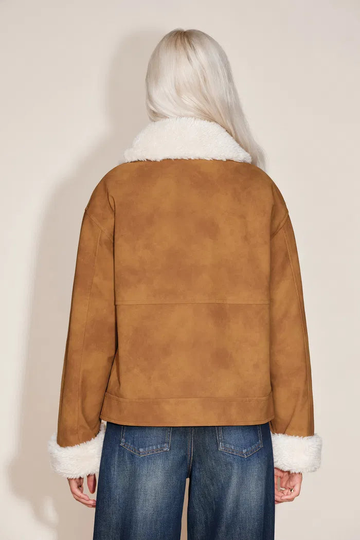 Flora Contrast Lapel Cotton Coat in Matte Faux Leather
