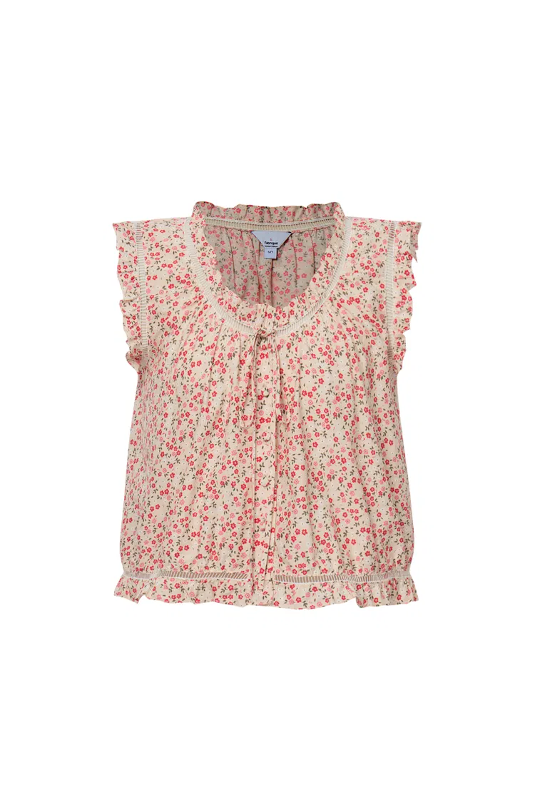 Floris Ruffled Floral Sleeveless Top in Silk-Cotton