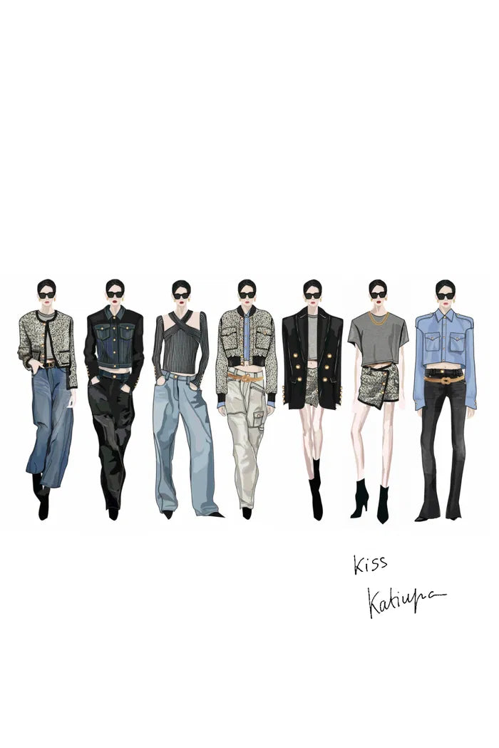 Katiuscia designs for women who love to express their unique personality through details. Black leads the way, softened by hints of vanilla white, warm cappuccino brown, and ice blue. Gold accents highlight the tailoring and add richness. For her, clothing becomes a way to express personal freedom and stand out naturally.