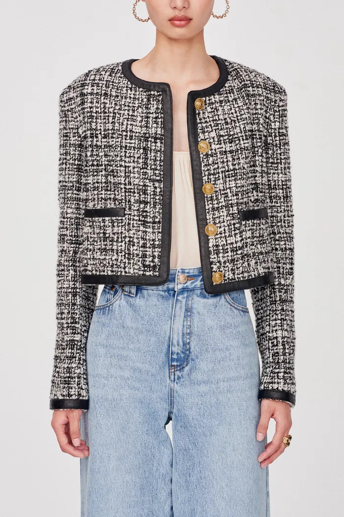 Gabriel 24K Gold Button Tweed Jacket in Two-Tone Wool Bouclé
