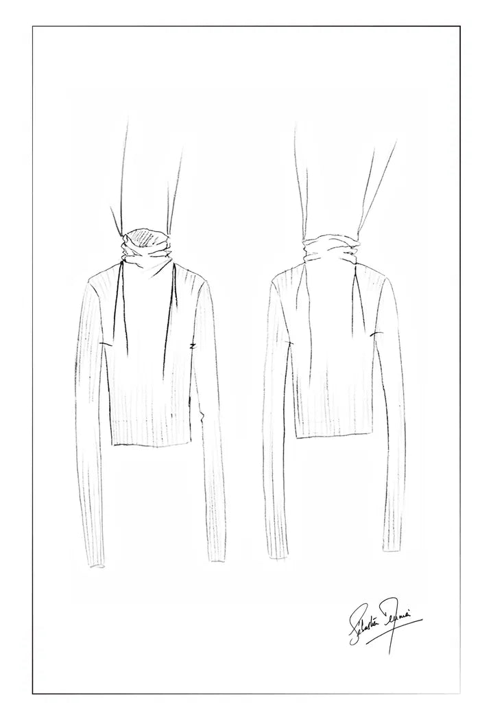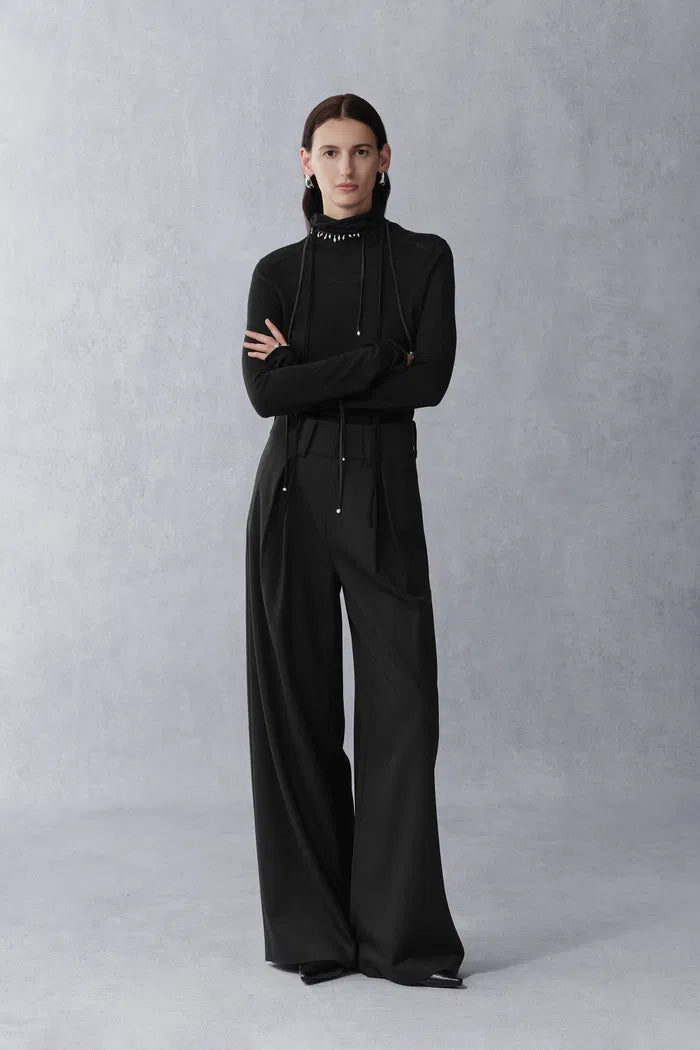 Galatee Drawstring Gathered Collar Sweater in Merino Wool