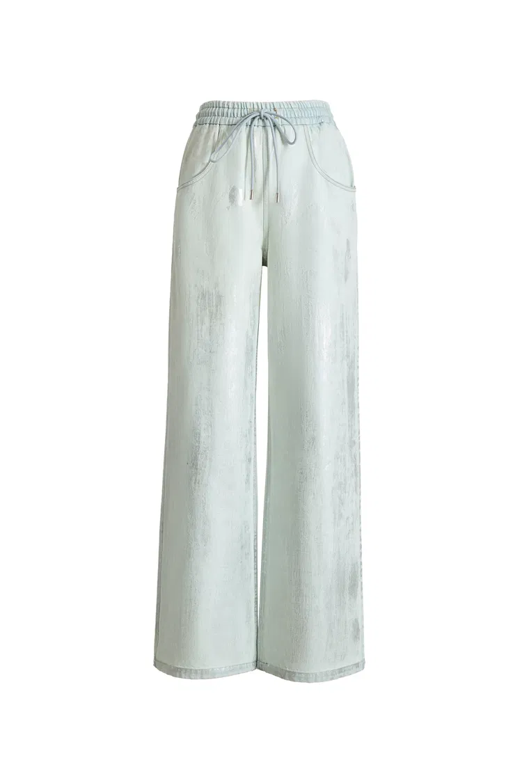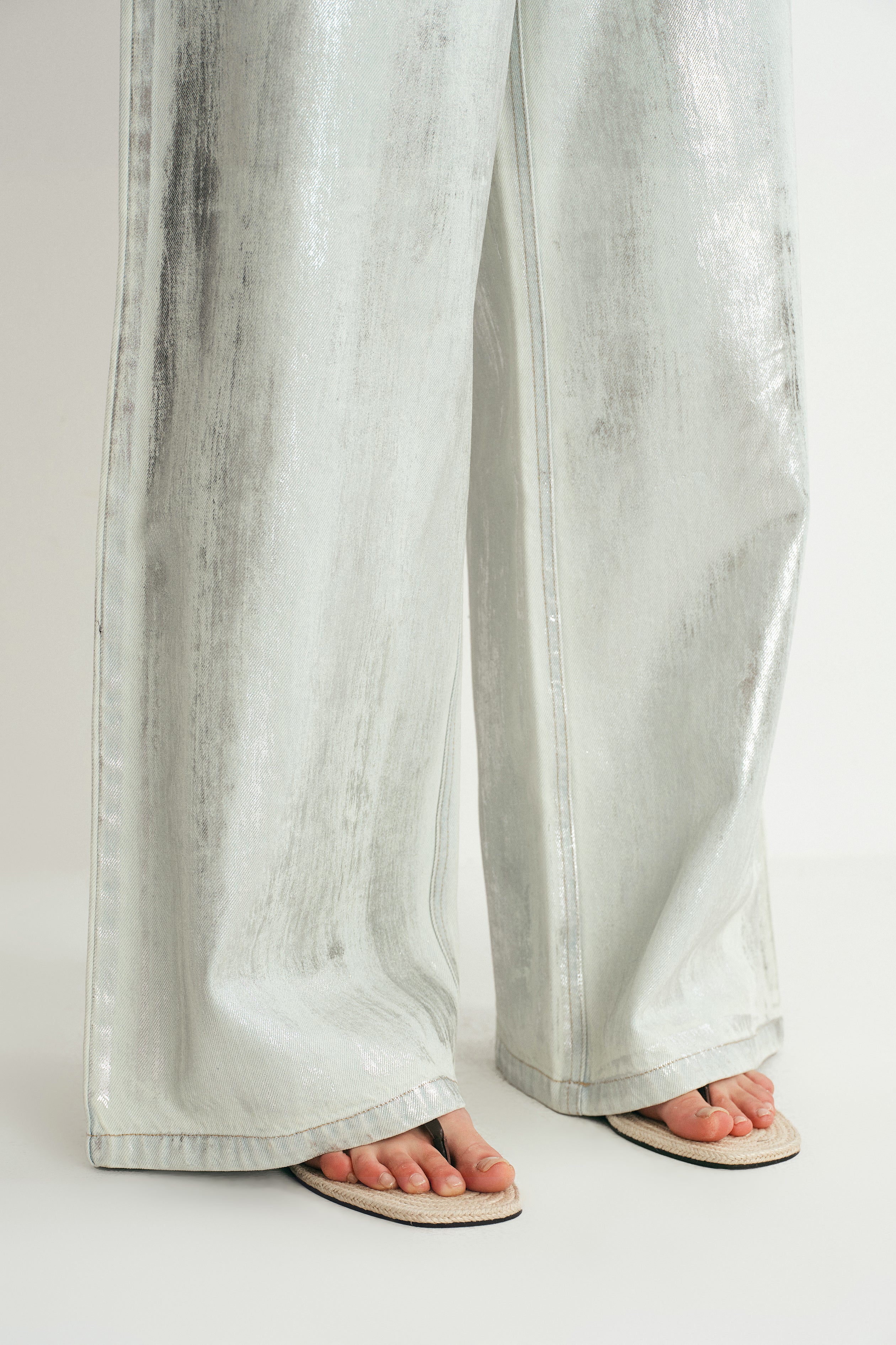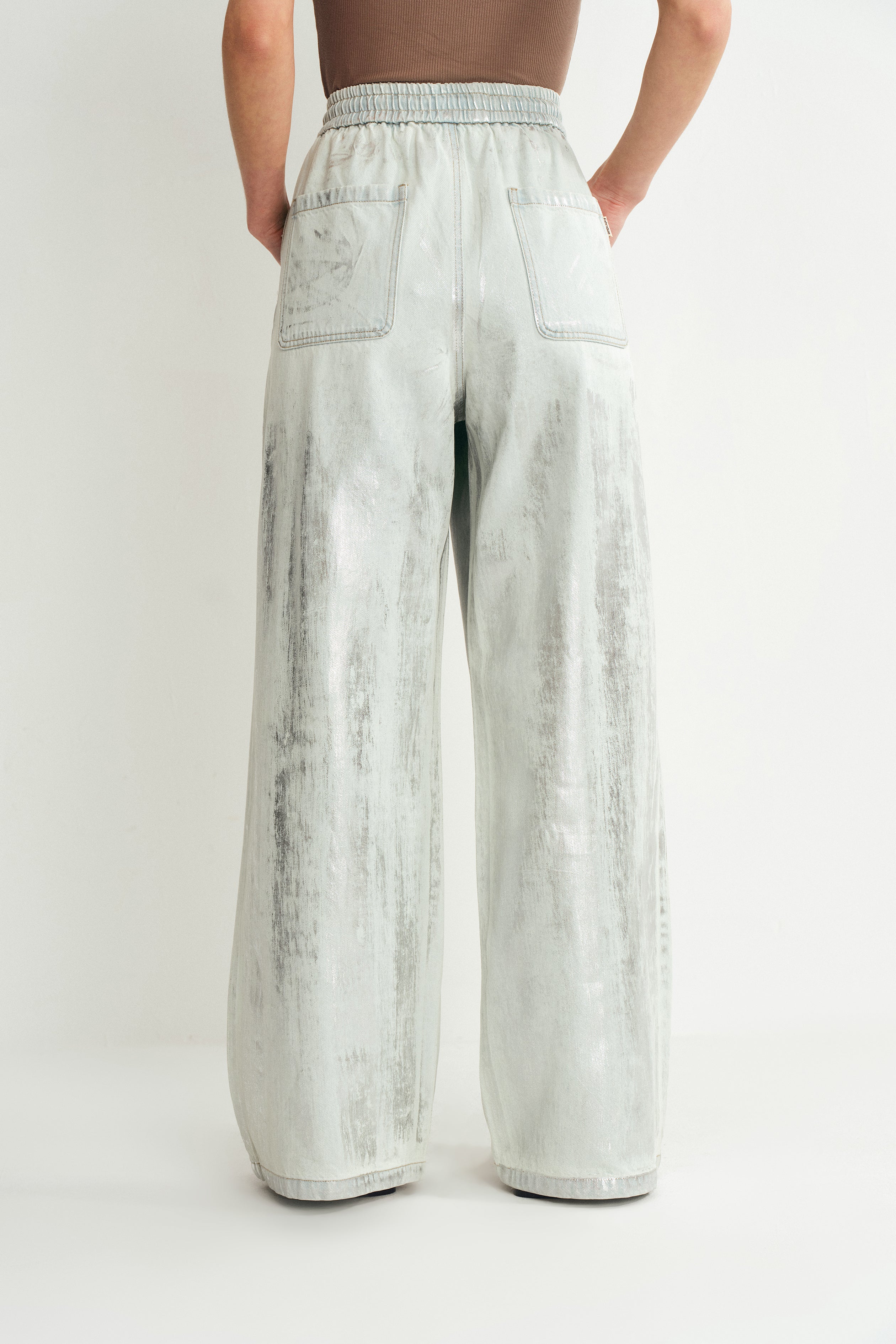 Galaxy Shimmer Coated Wide Leg Jeans in Summer Denim