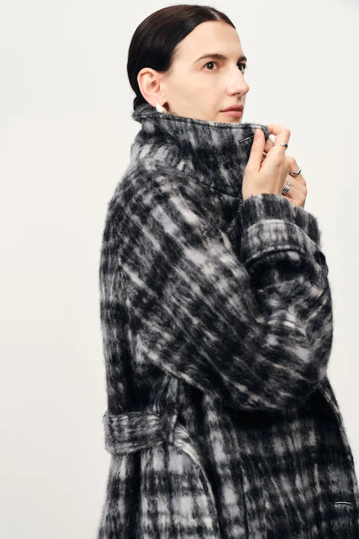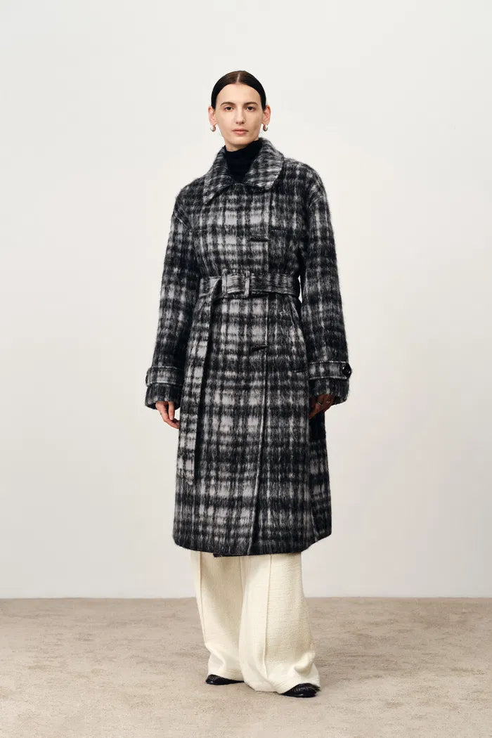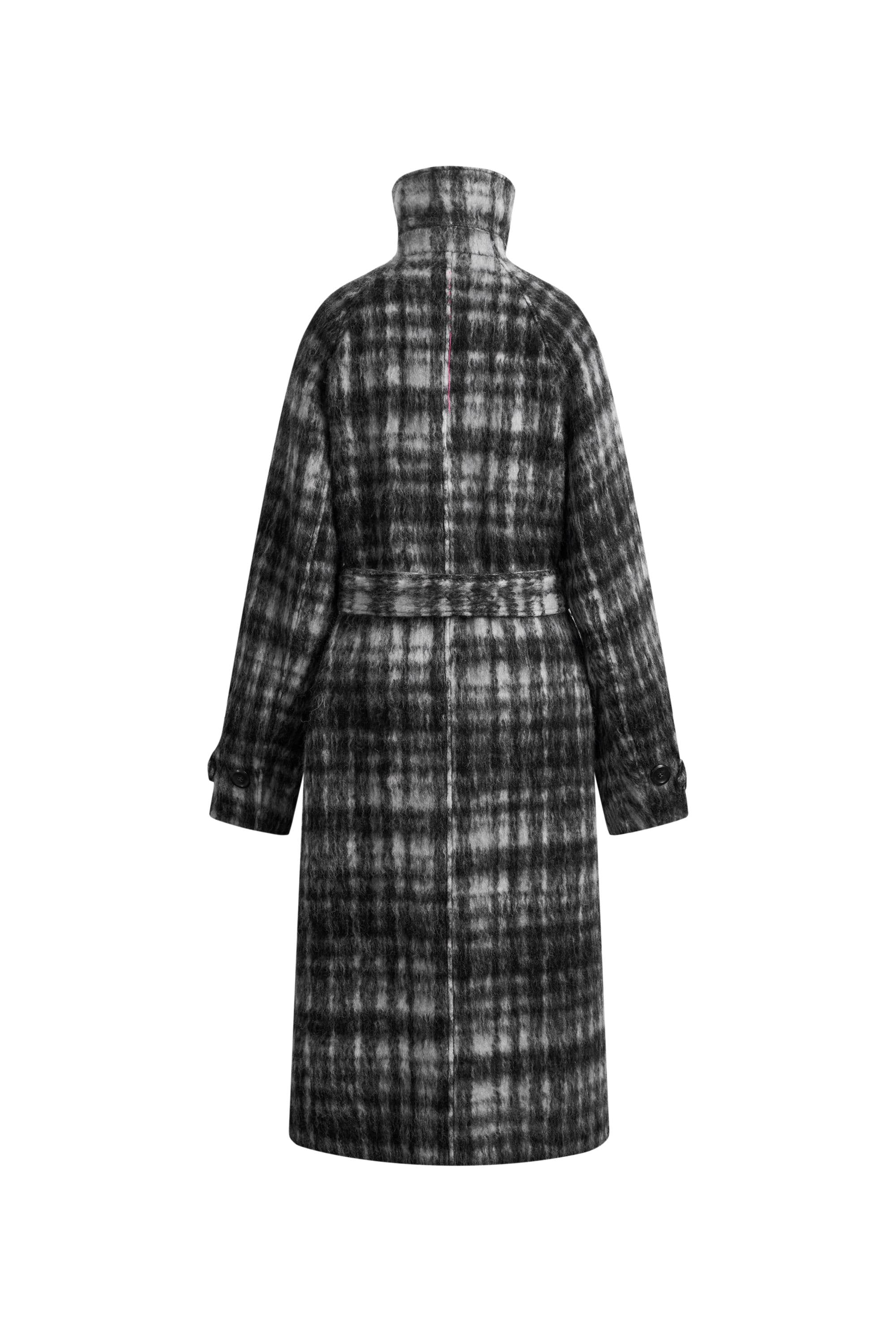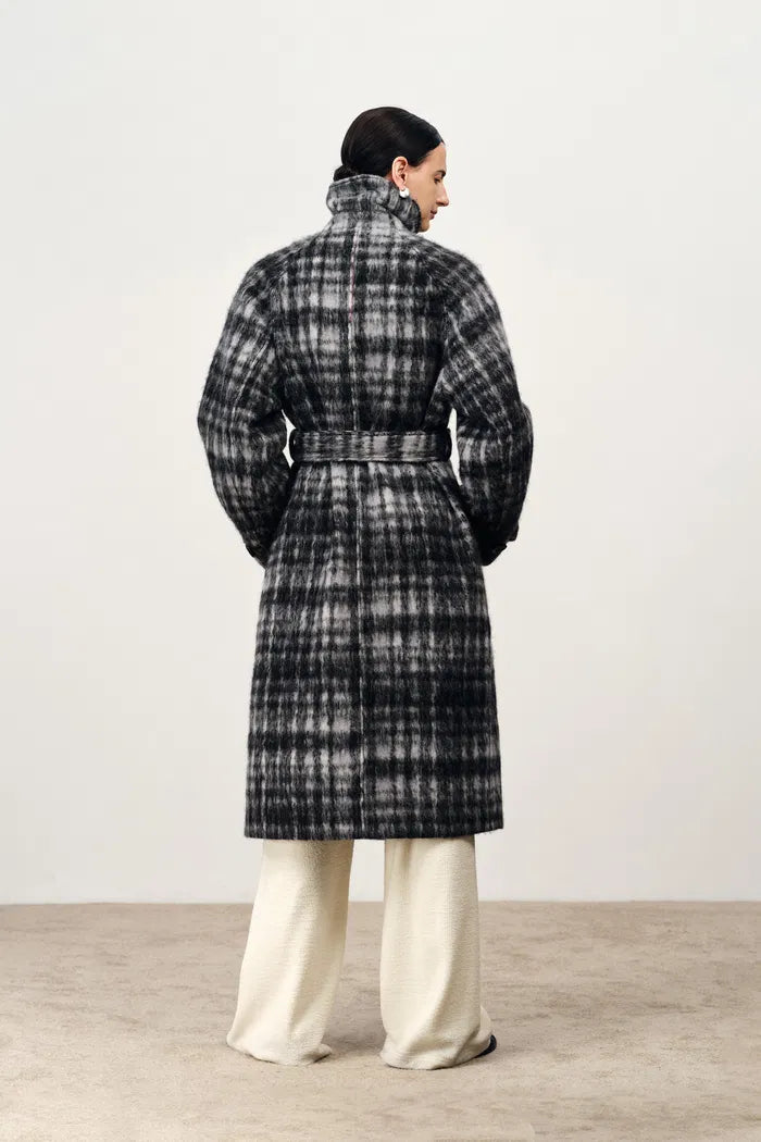 Gingham Plaid Lapel Wool Coat in Merino Cashmere Double Face