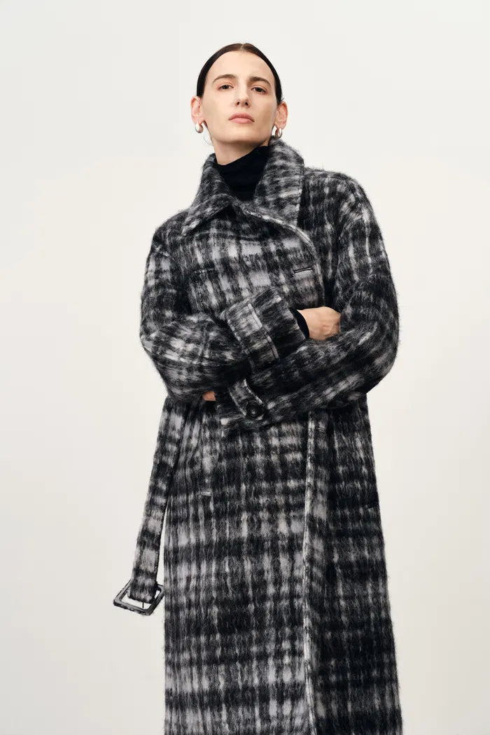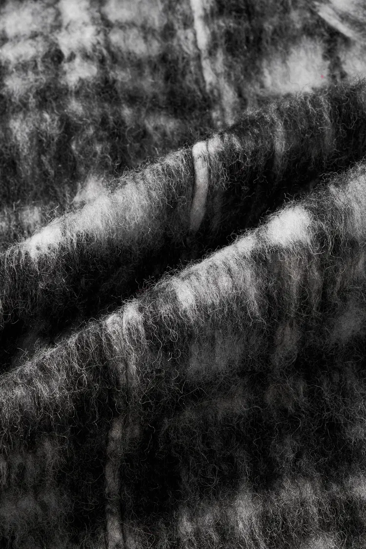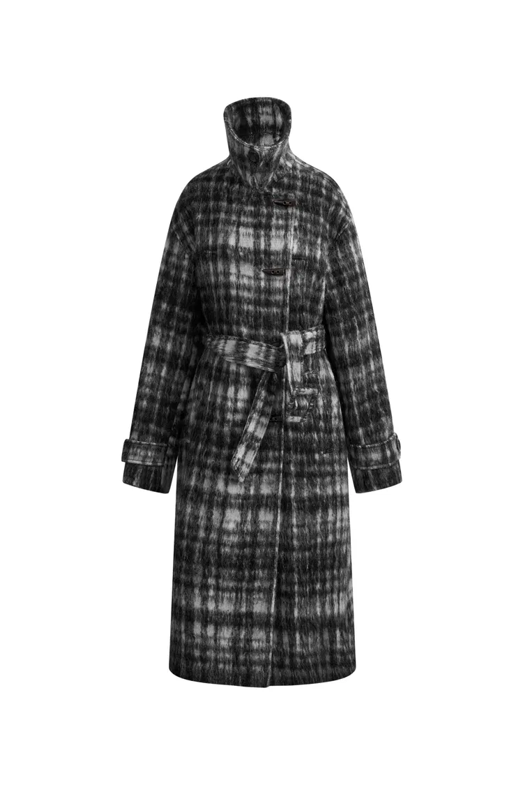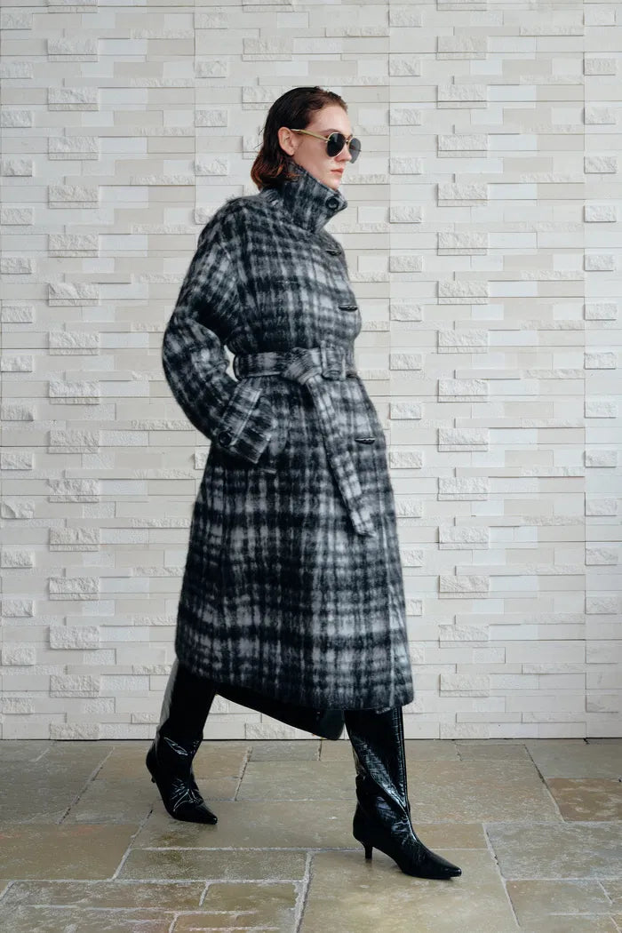 Gingham Plaid Lapel Wool Coat in Merino Cashmere Double Face