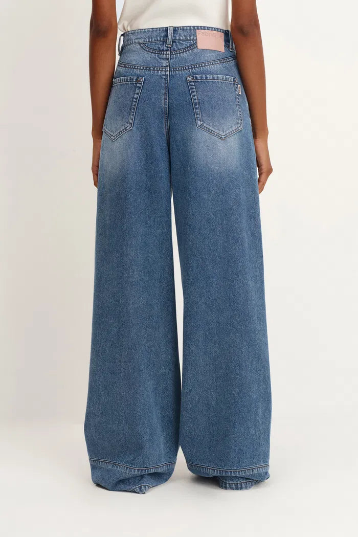 Glaire Straight Wide Leg Jeans in Lyocell Denim