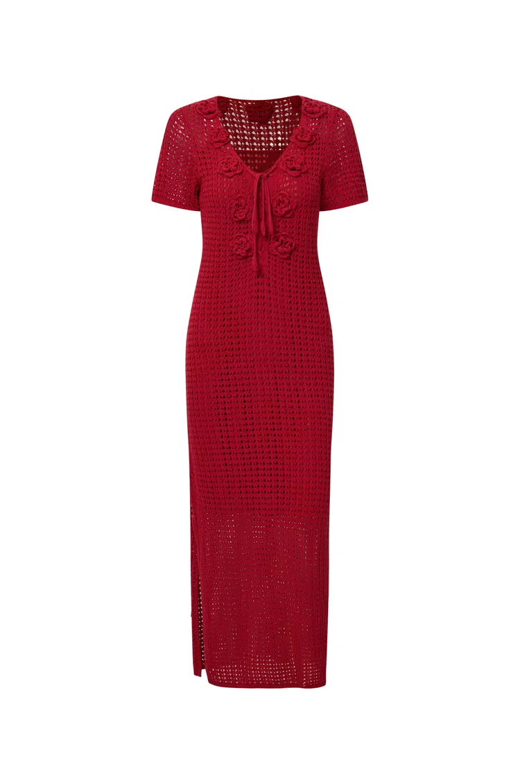 Golf Floral Crocheted Knit Dress in Hemp Cotton Knit