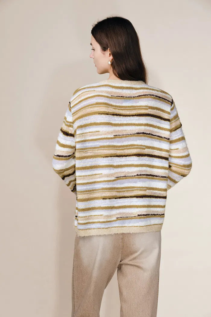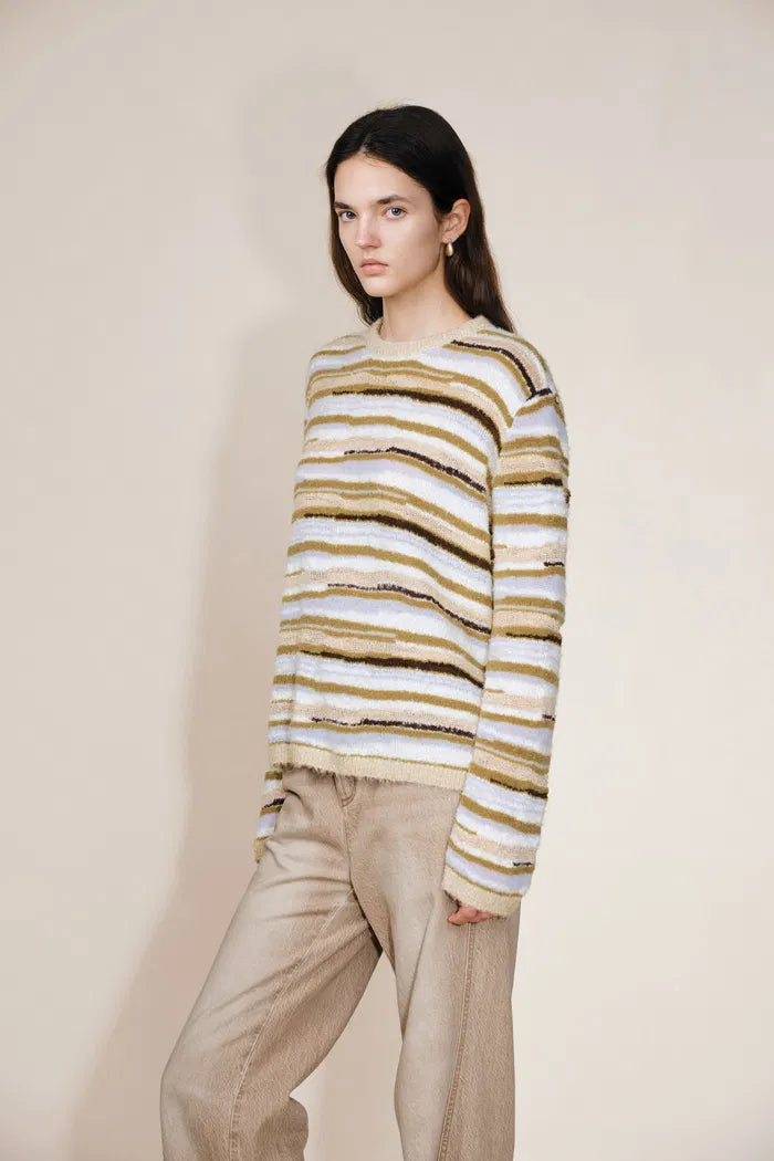 Green River Bouclé Mixed Stripe Sweater in Merino-Mohair Multi-Yarn