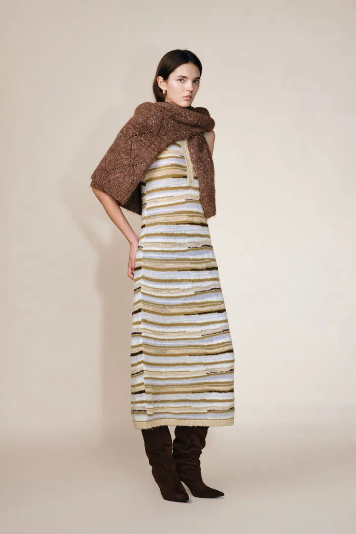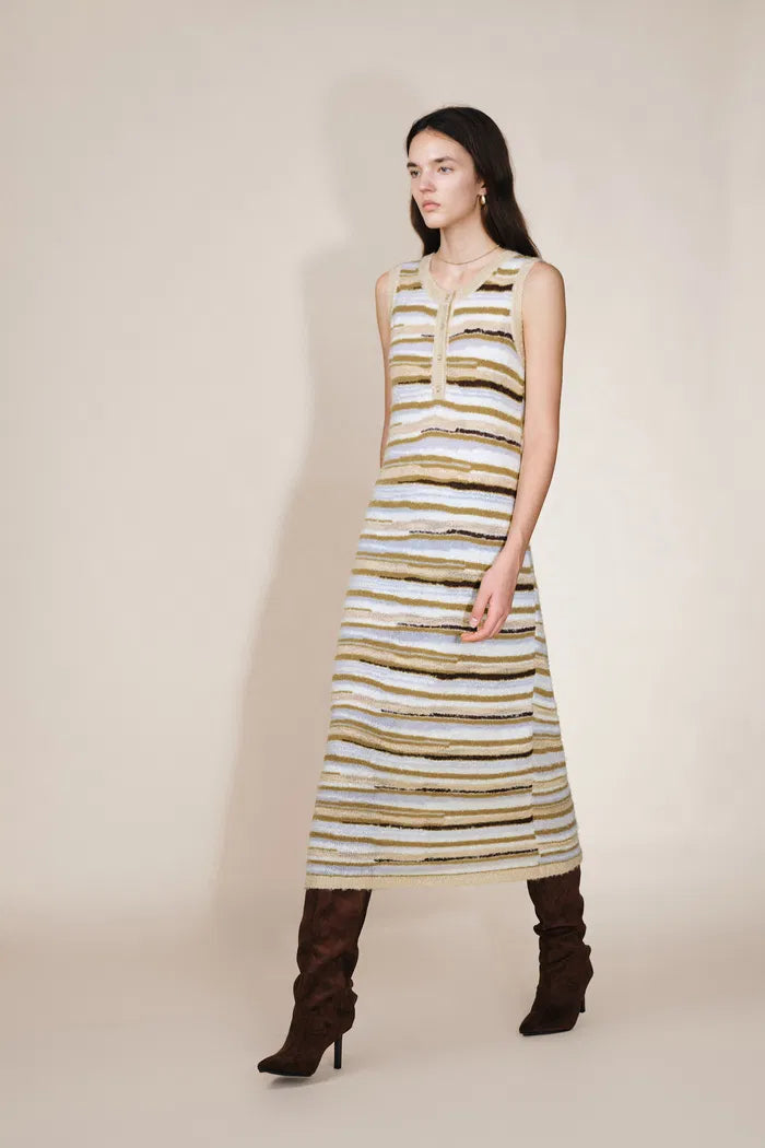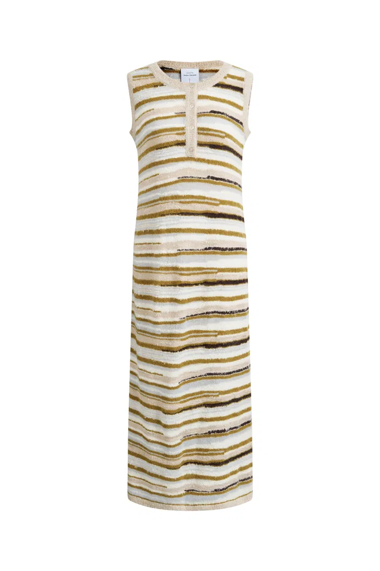 Green River Bouclé Mixed Stripe Tank Dress in Merino-Mohair Multi-Yarn