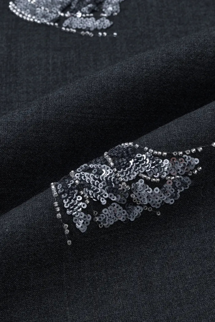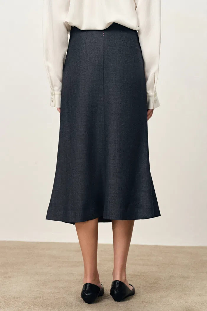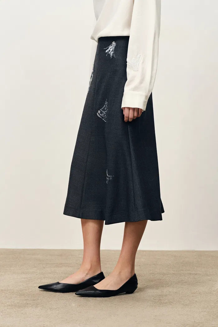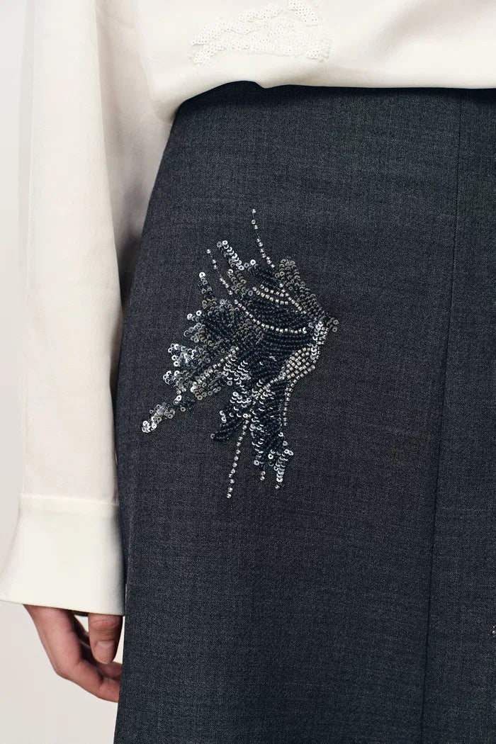 Hannah Beadwork Midi Skirt in Wool Blend Suiting