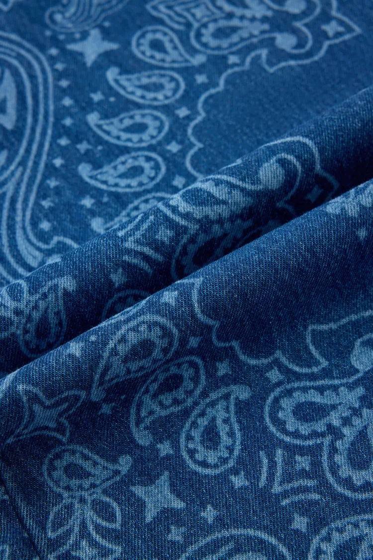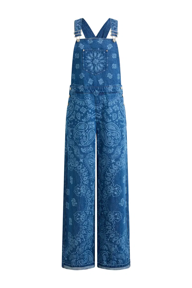 Hazel Laser-Print Paisley Denim Overalls in Cotton Denim