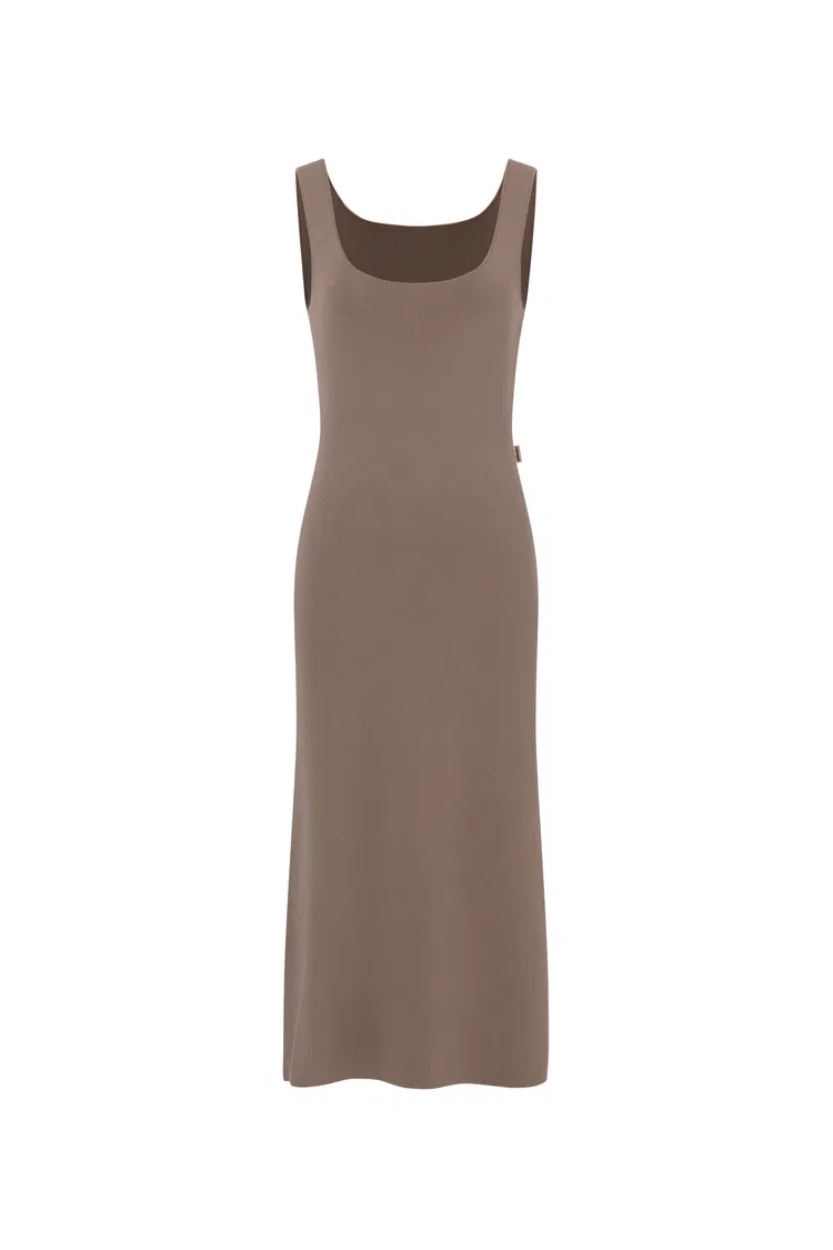 Hera Wide Sleeveless Strap Dress in Stretch Yarn Knit