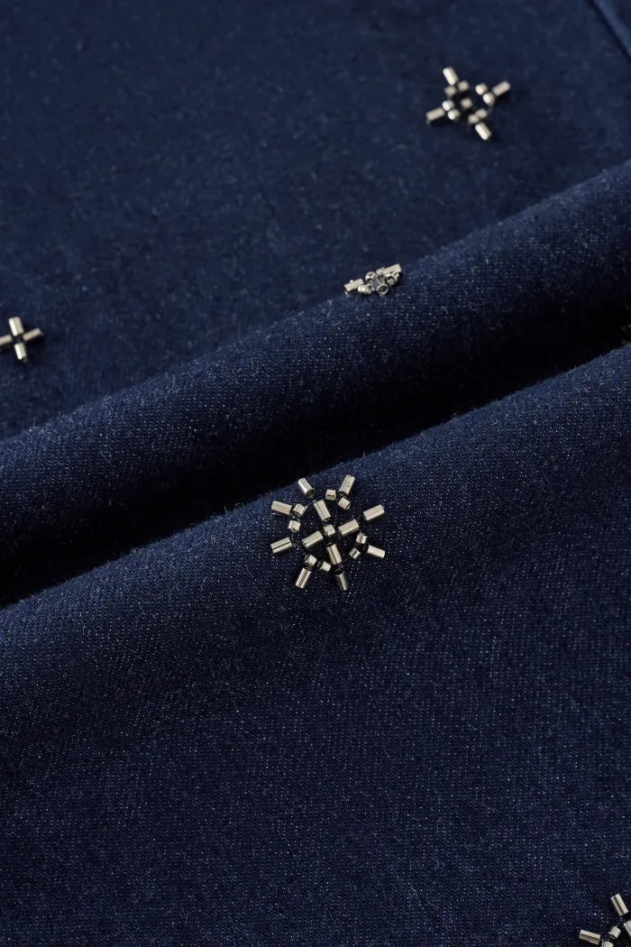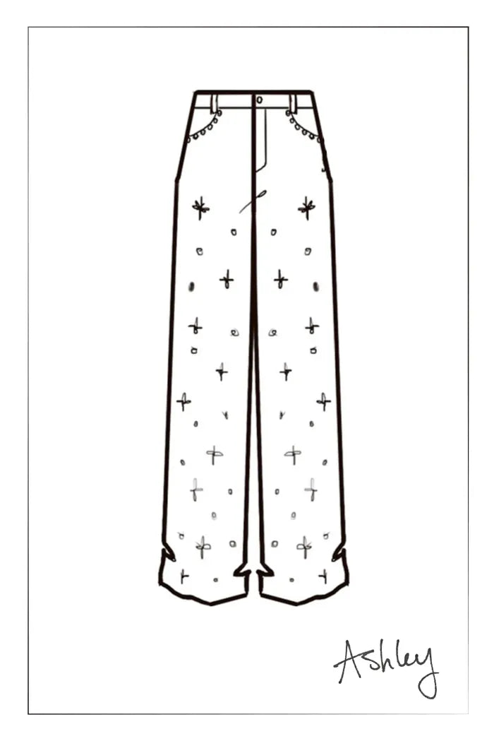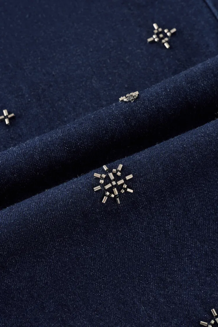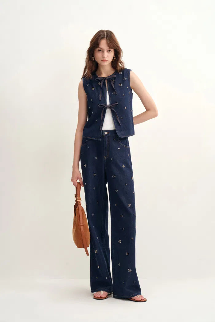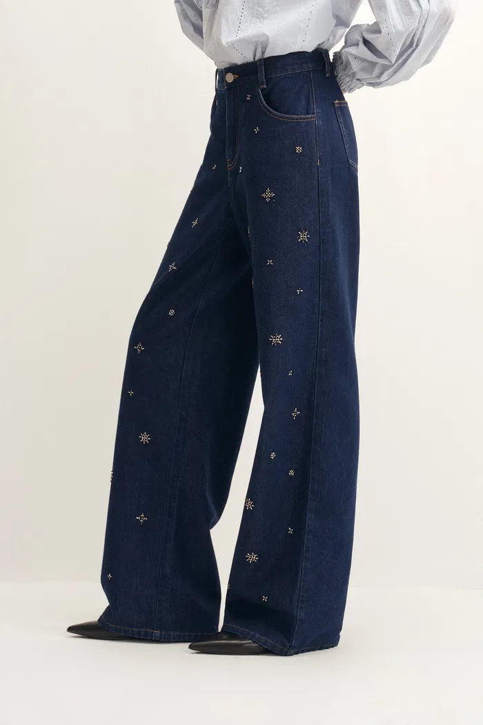 Hestia Hand Beaded Star Embellishment Jeans in Lyocell Denim