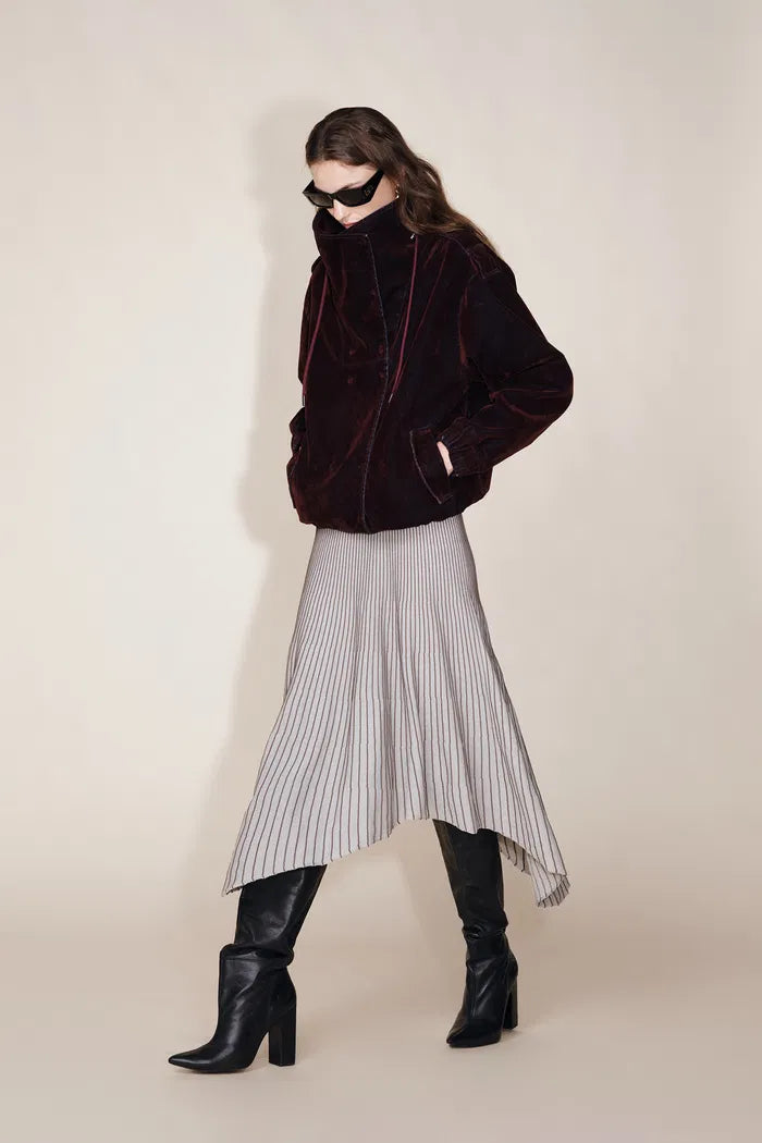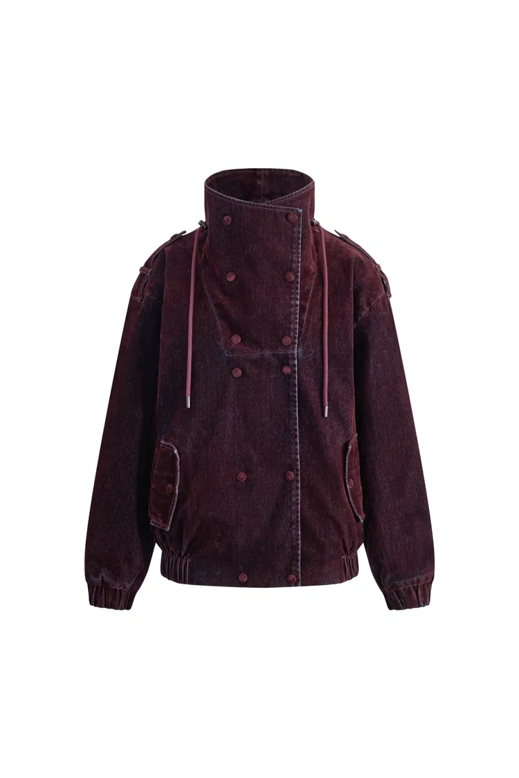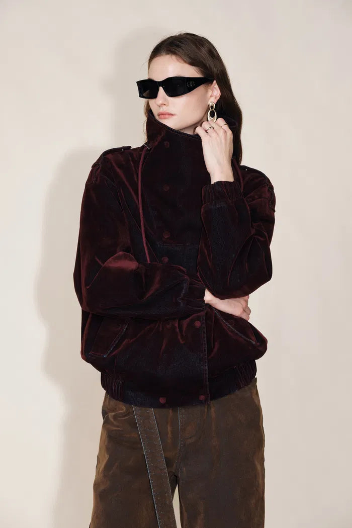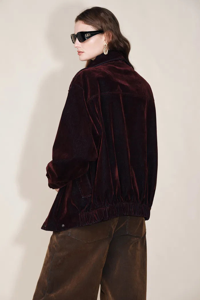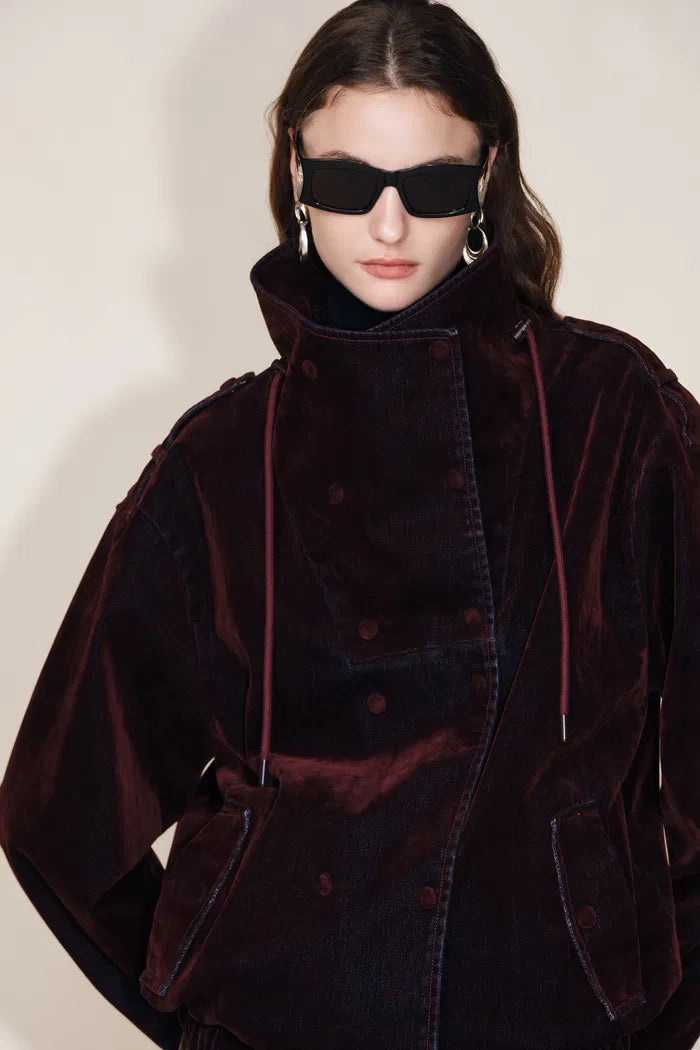 Hilda Reversible Collar Flocked Denim Jacket in Flocked Denim