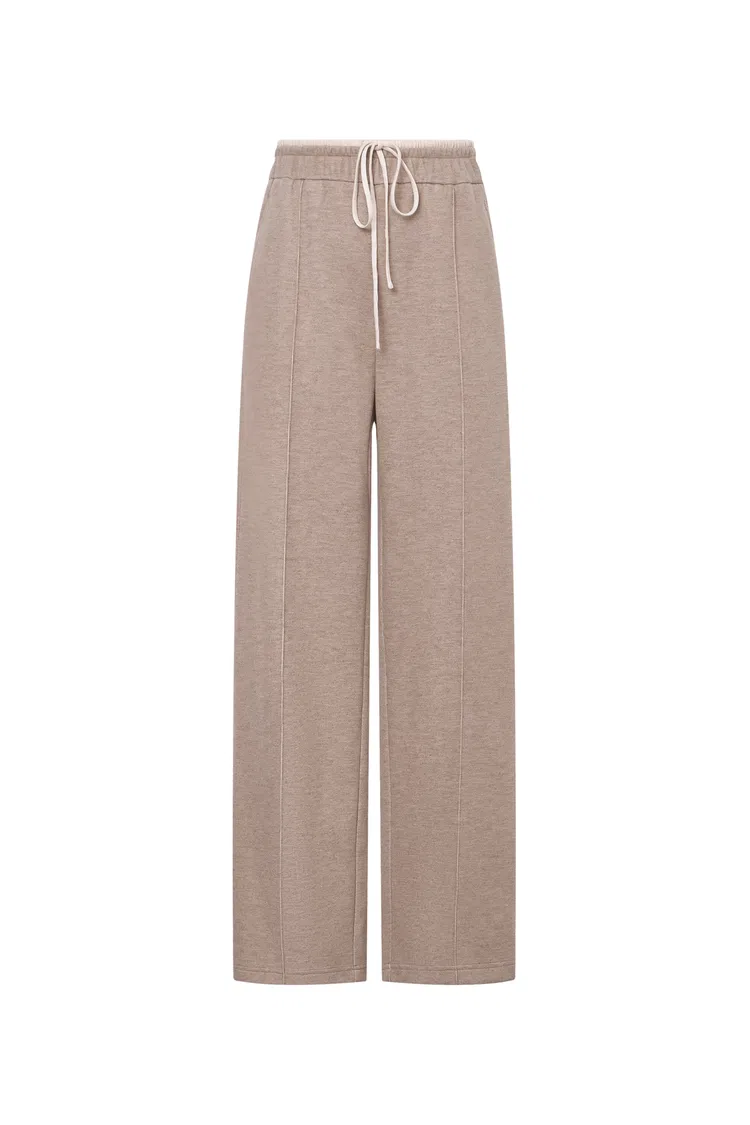Icy Double Waistband Casual Trousers in Wool Blend Terry Knit