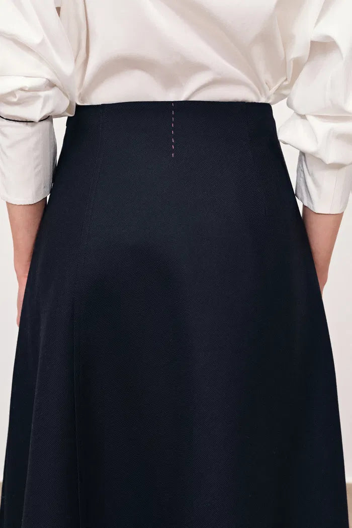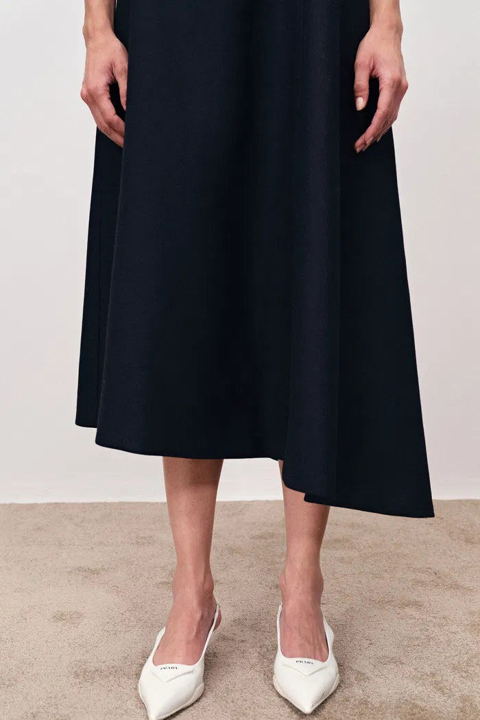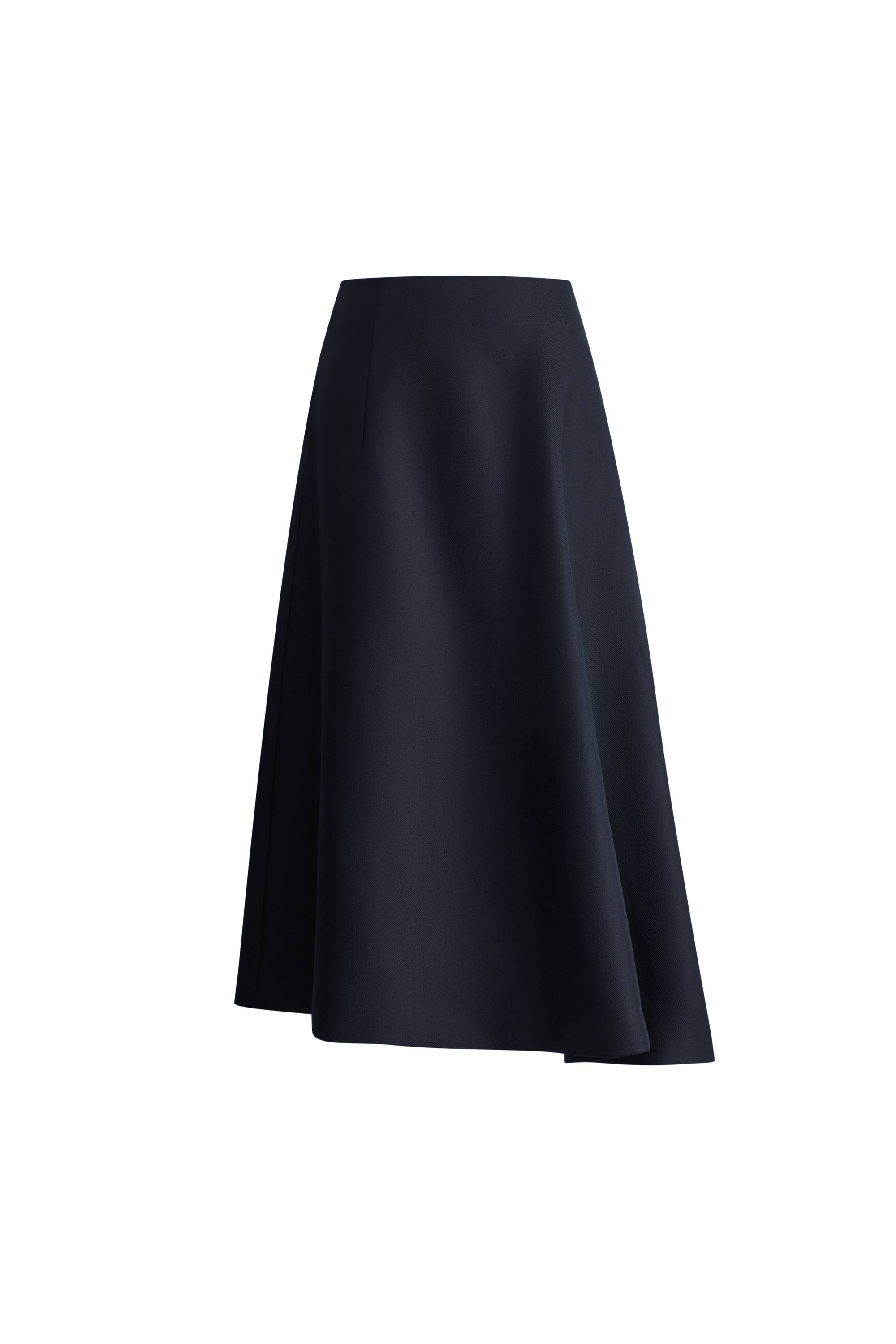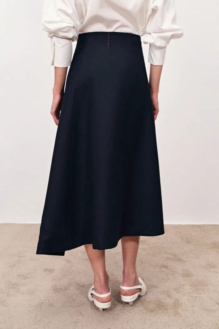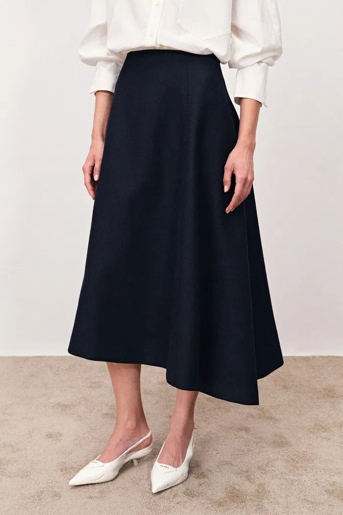 Ilse Asymmetric Midi Skirt in Fine Wool Blend