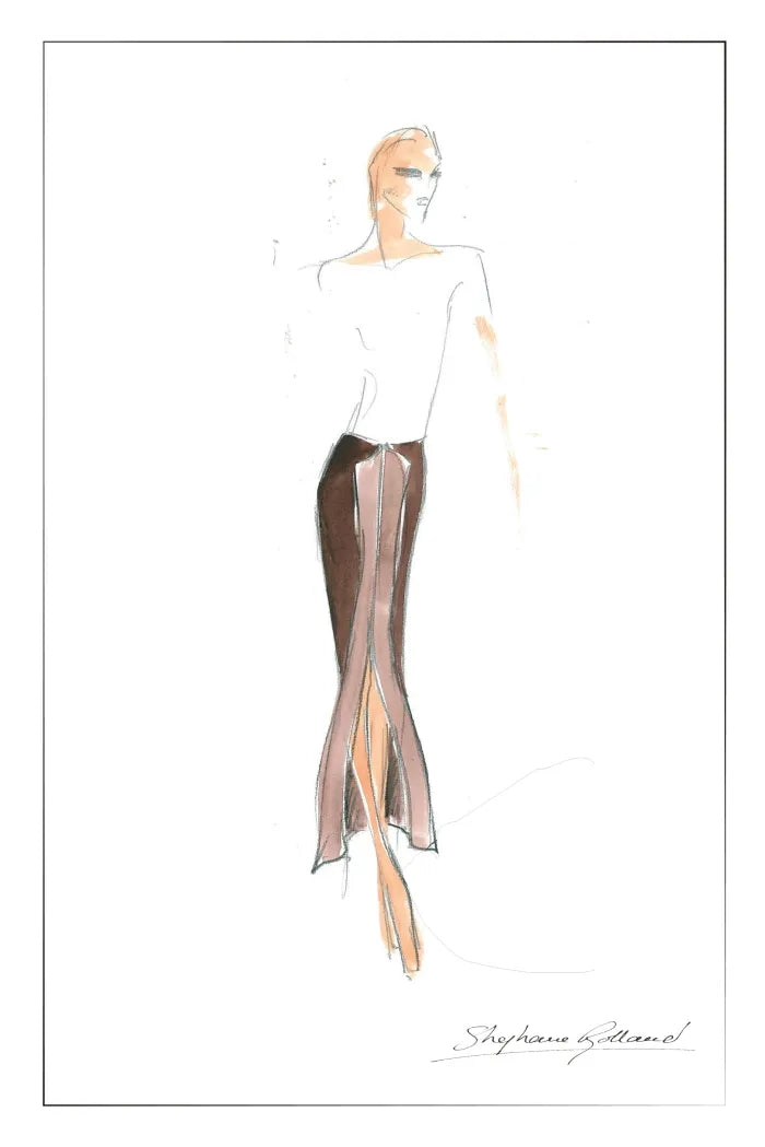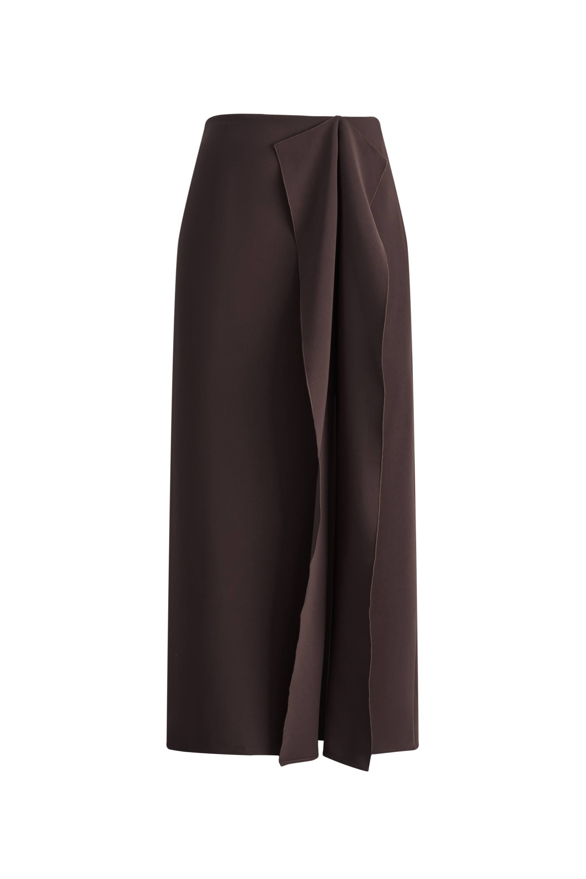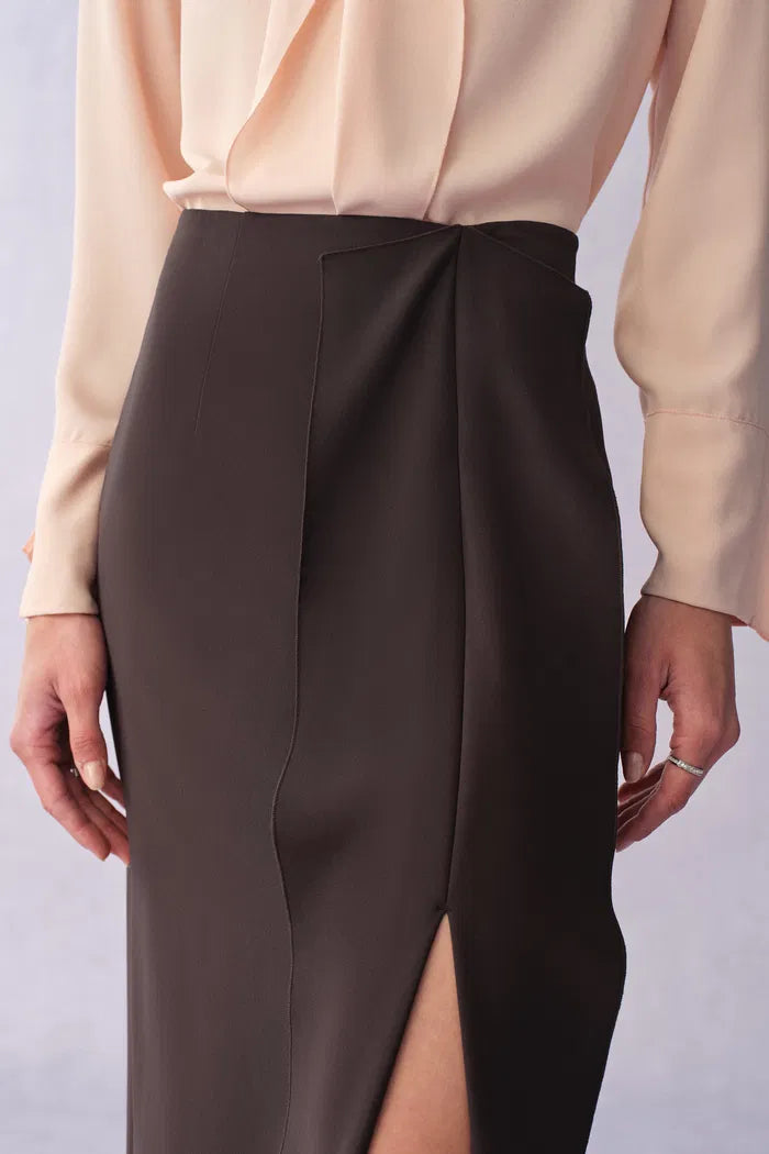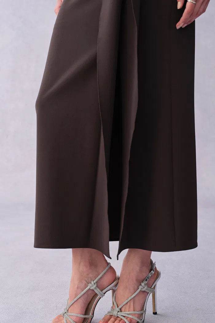Isao Side Slit Ruffle Maxi Skirt in Stretchy Matte Fabric