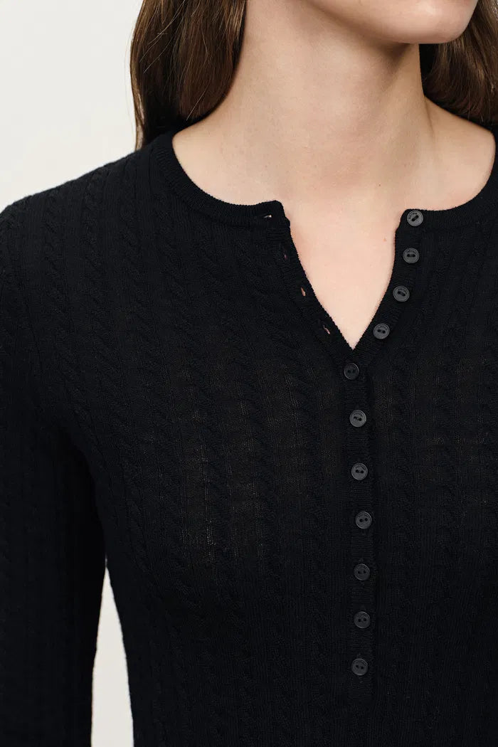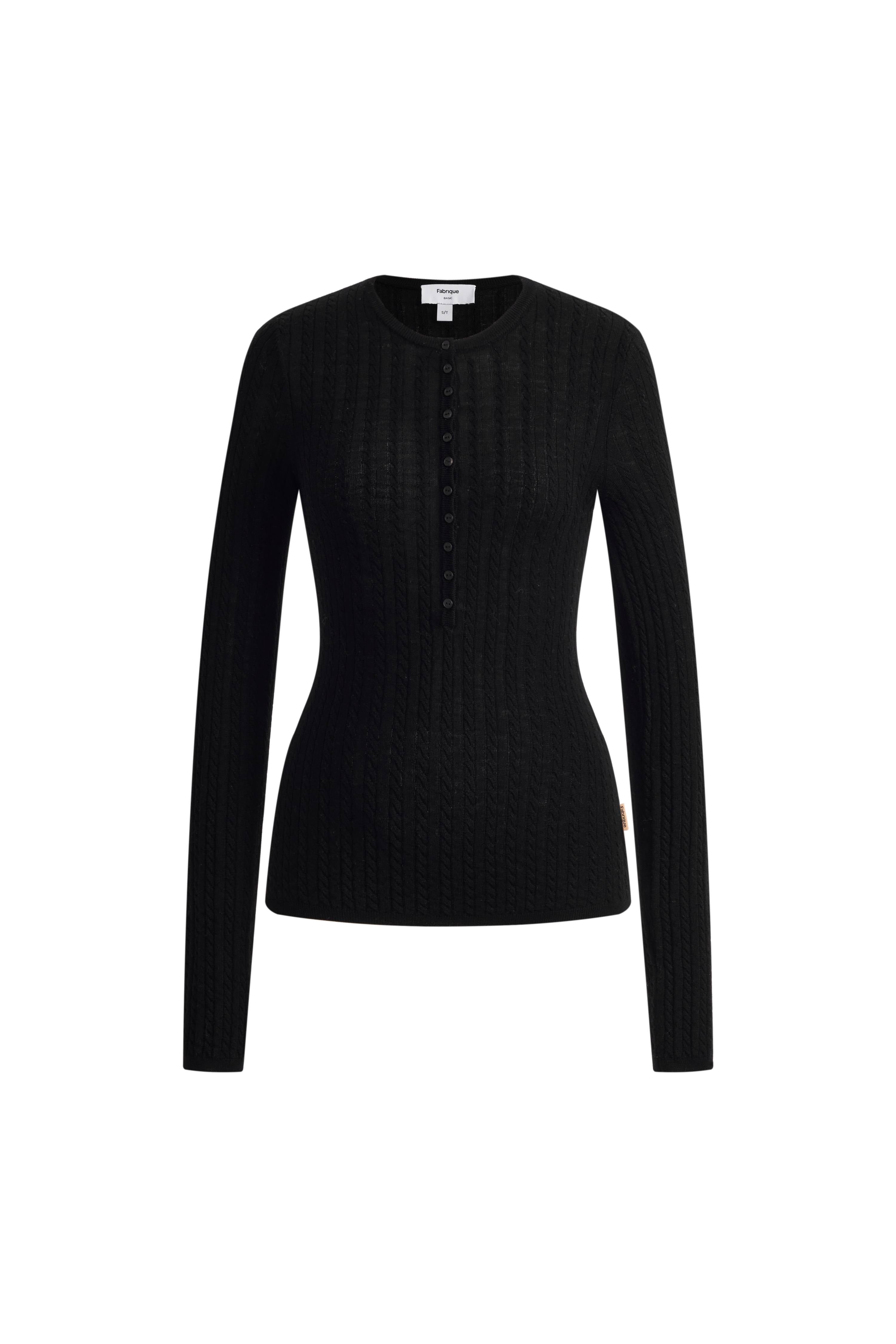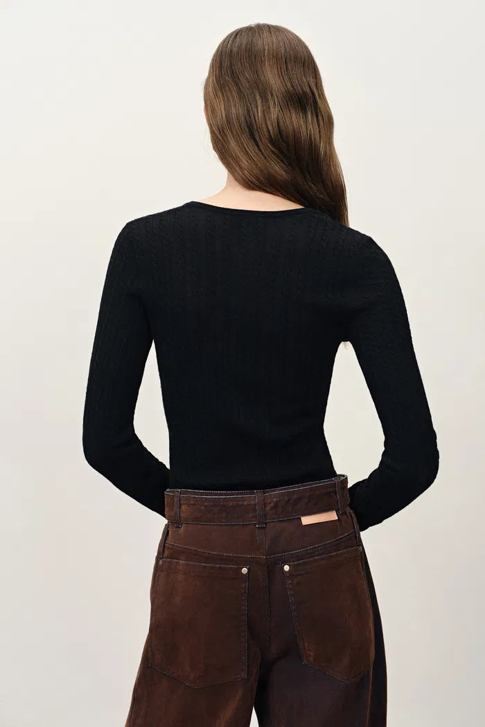 Issac Lightweight Long Sleeve Sweater in Merino Wool Cable Knit