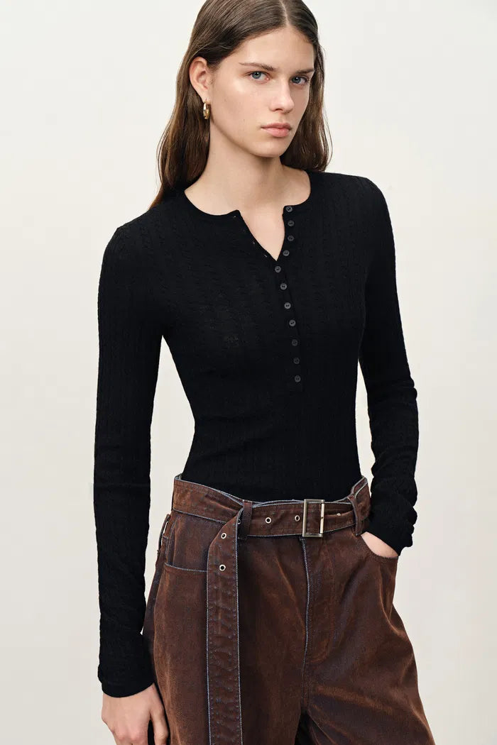 - Henley neckline