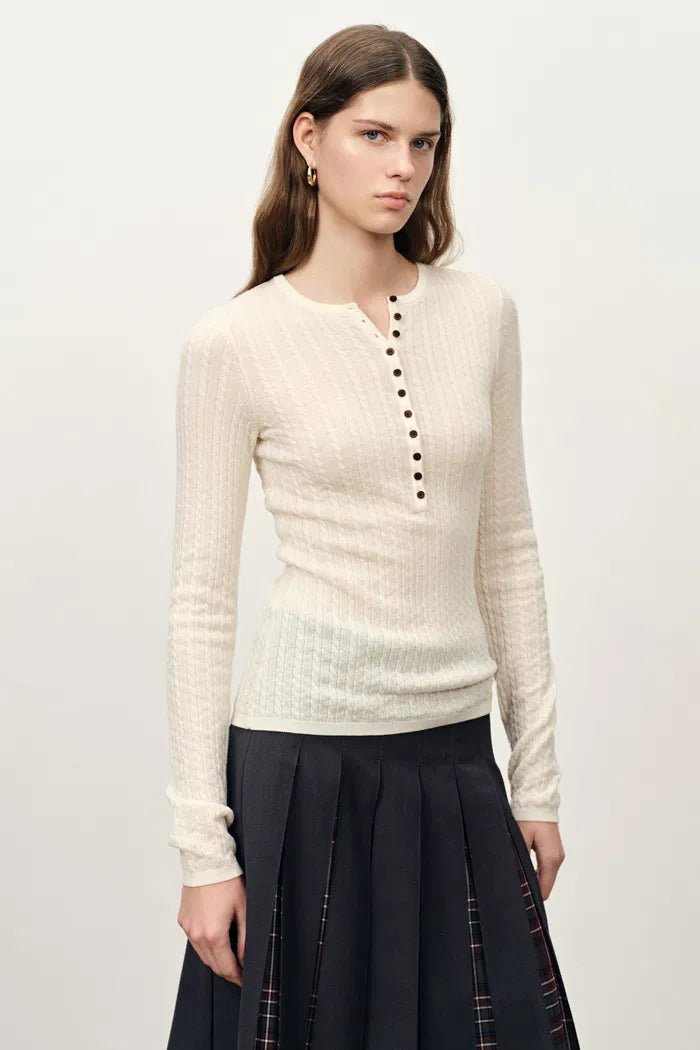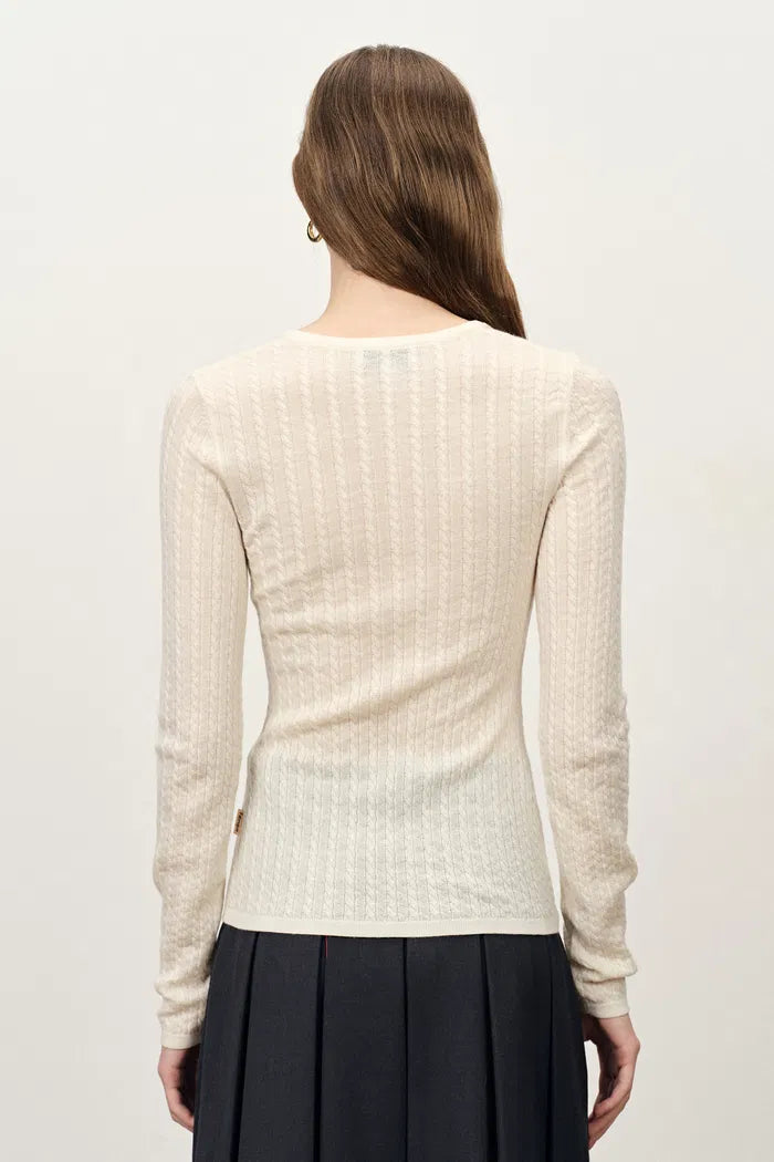 Issac Lightweight Long Sleeve Sweater in Merino Wool Cable Knit