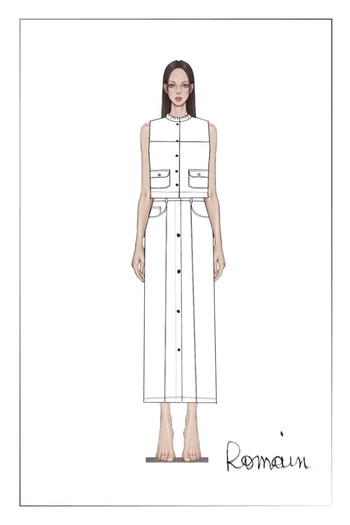 Ivan Ruffled Denim Vest in Technical Lyocell Denim