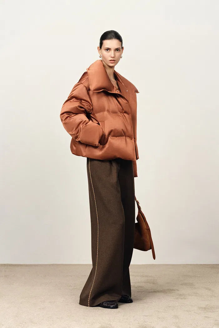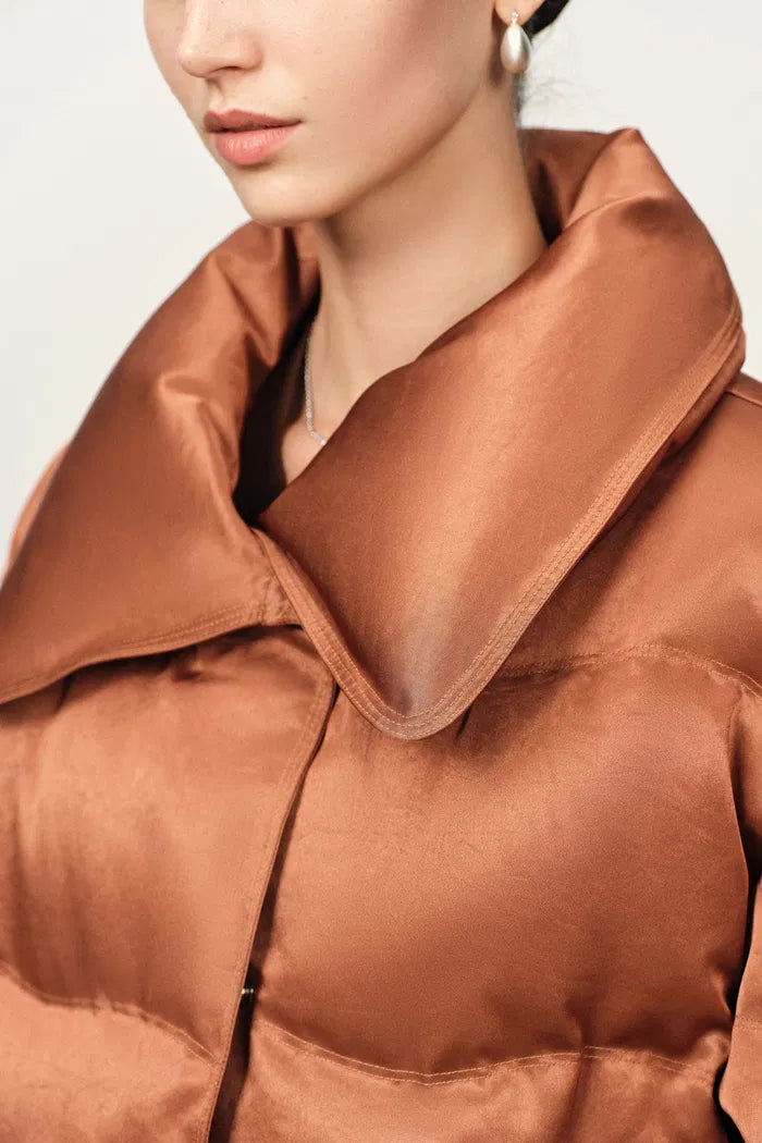 Ivy Lapel Quilted Down Jacket in Acetate Satin