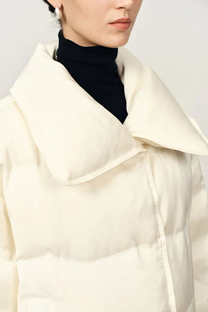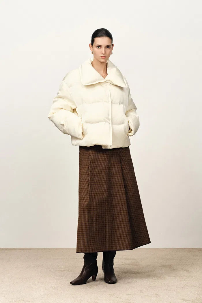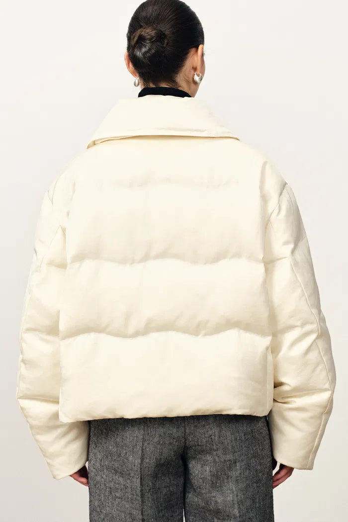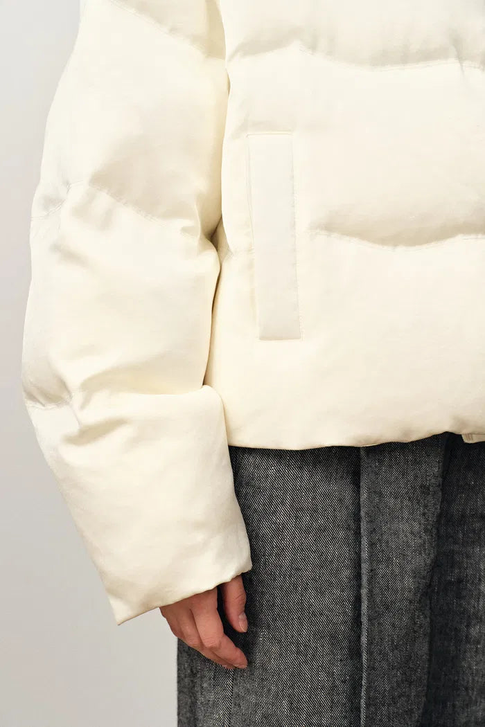 Ivy lapel Quilted Down Jacket in Acetate Satin