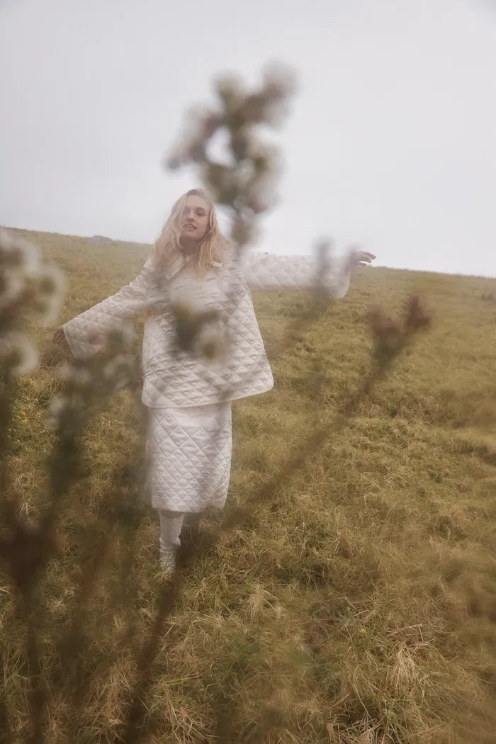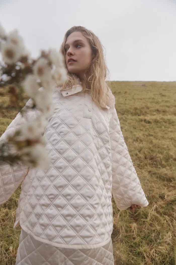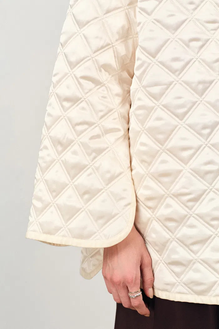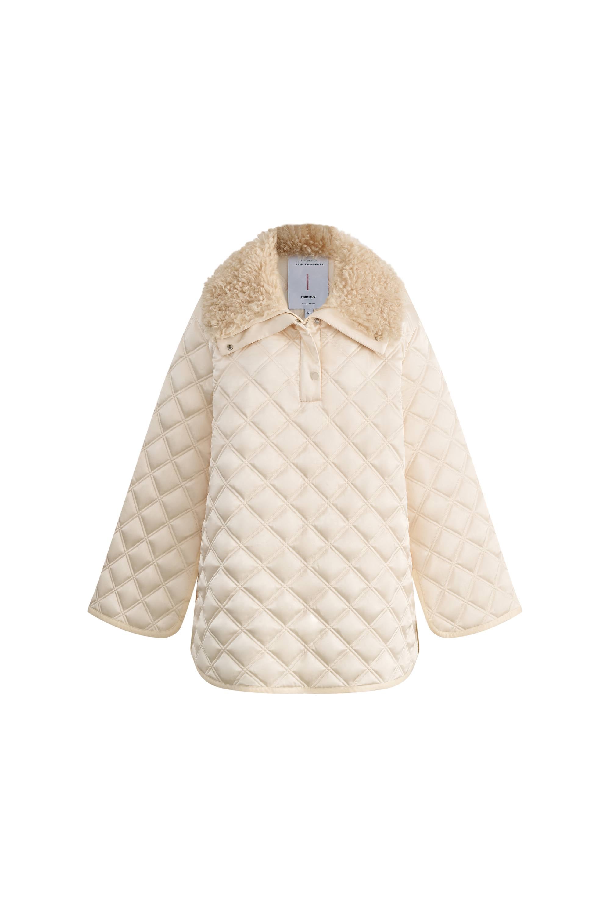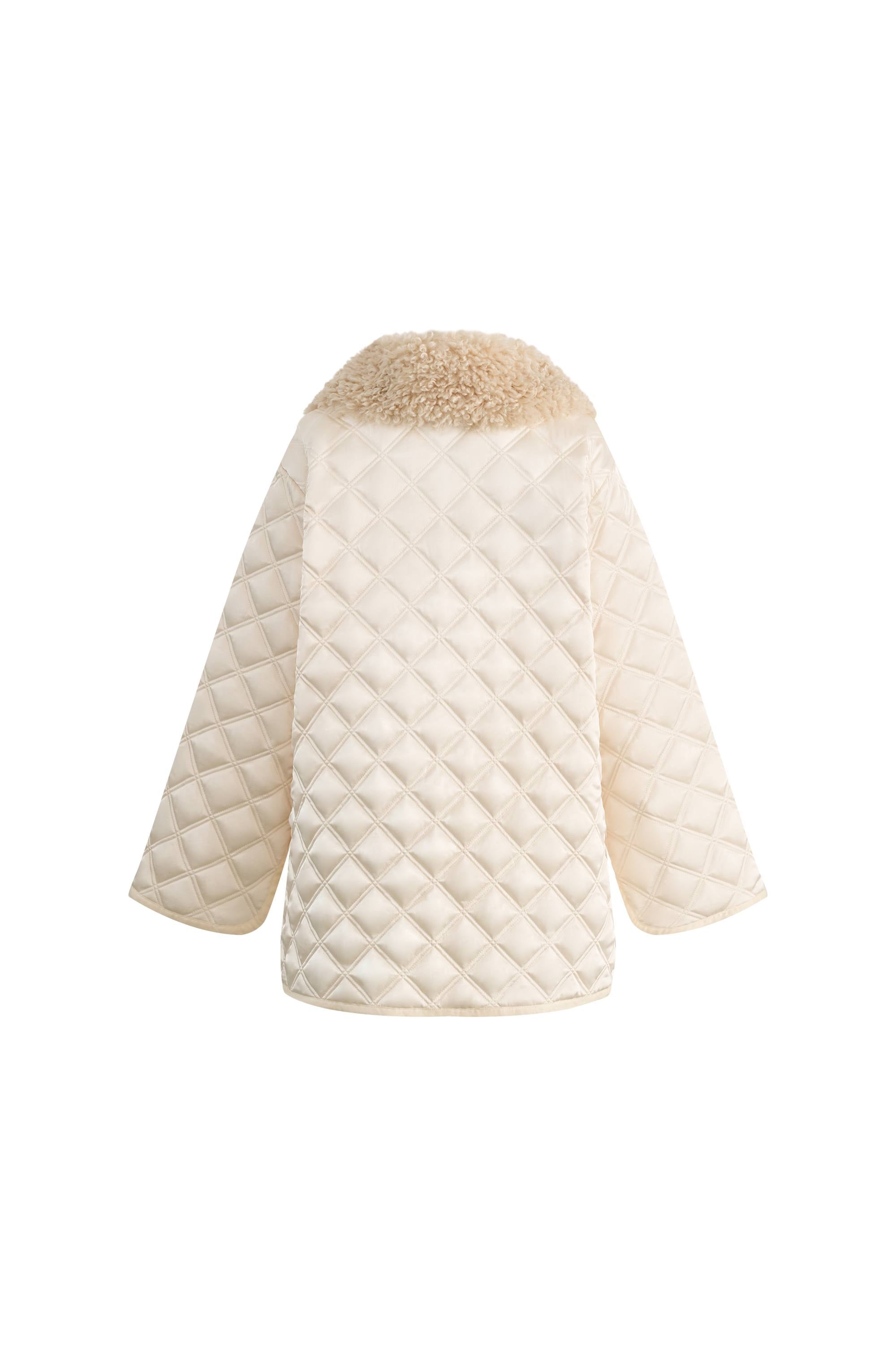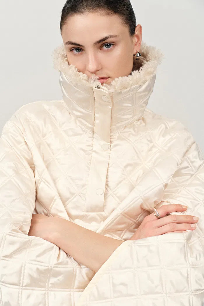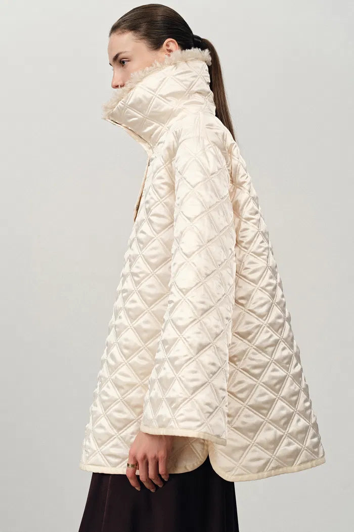Jasmine Fur Collar Quilted Cape Coat in Silk Satin