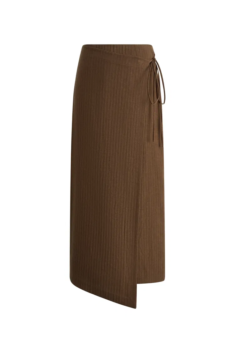 Jeanet Adjustable Tie Asymmetric Midi Skirt in Cotton Herringbone