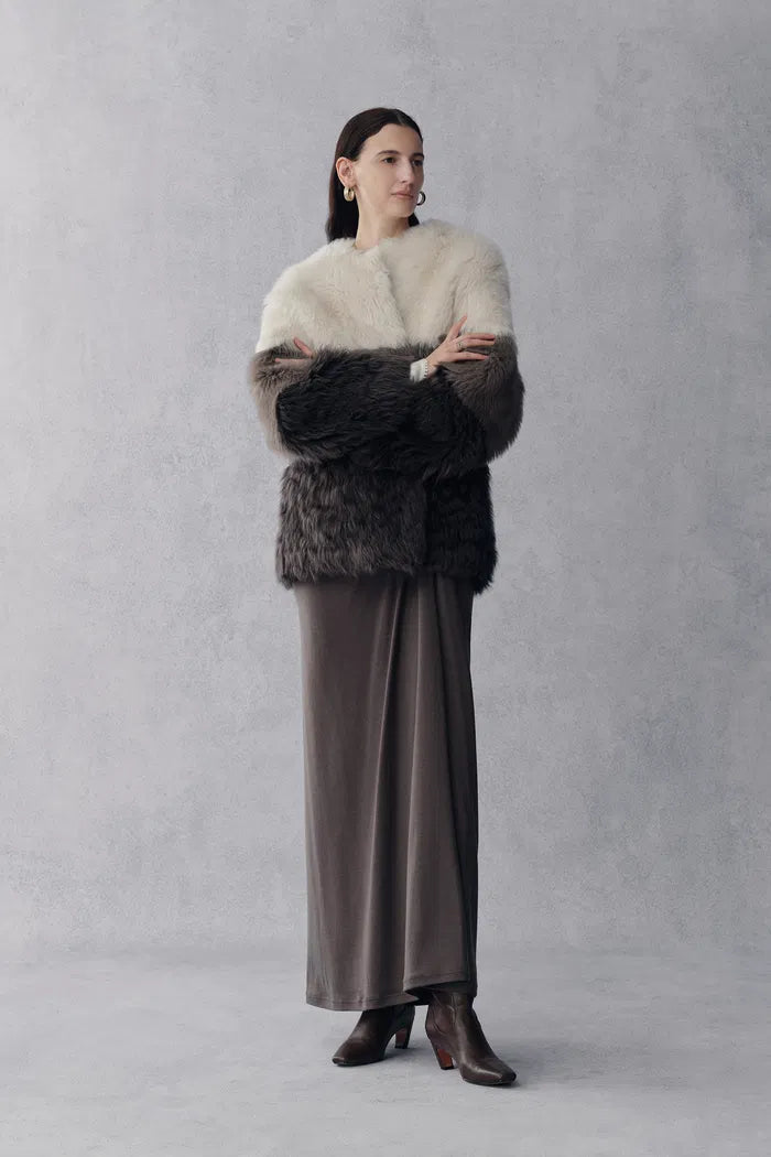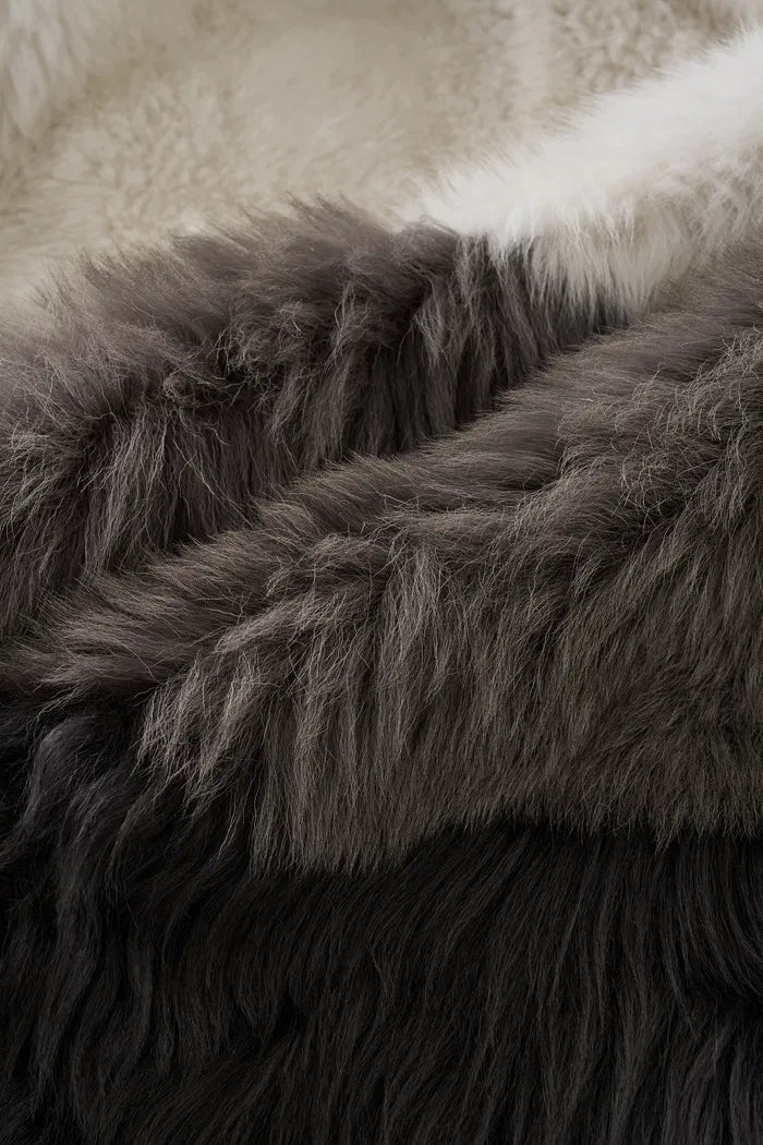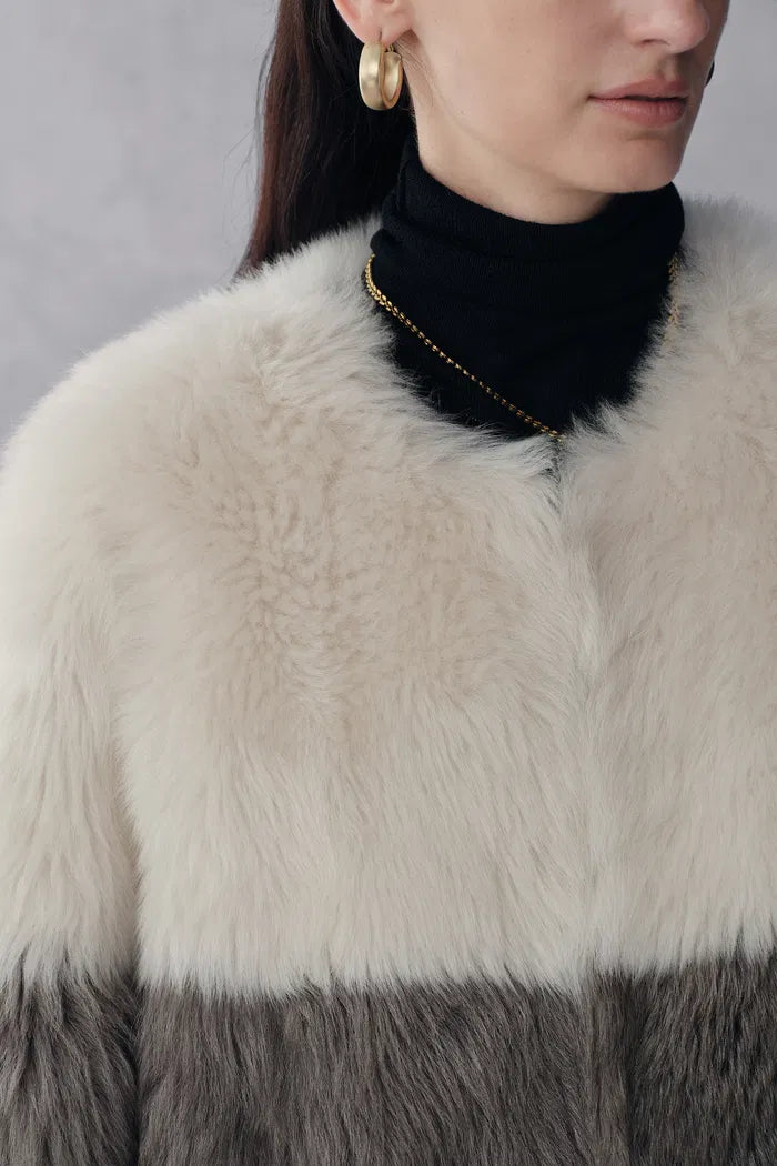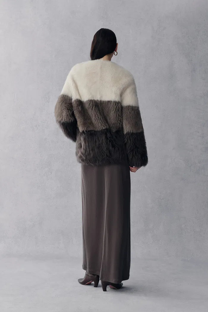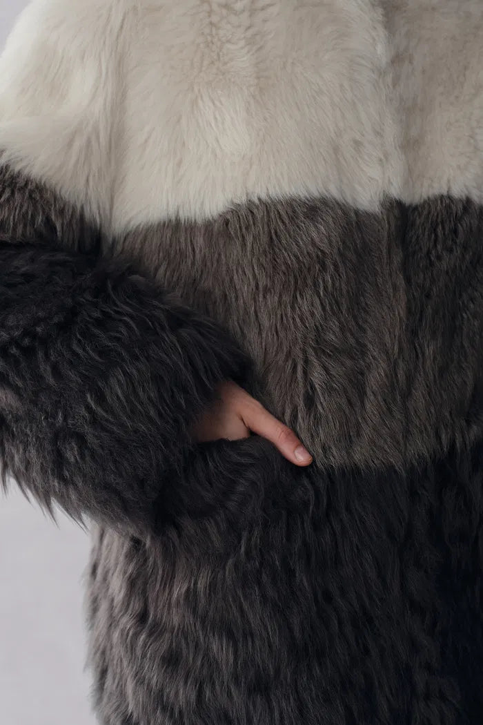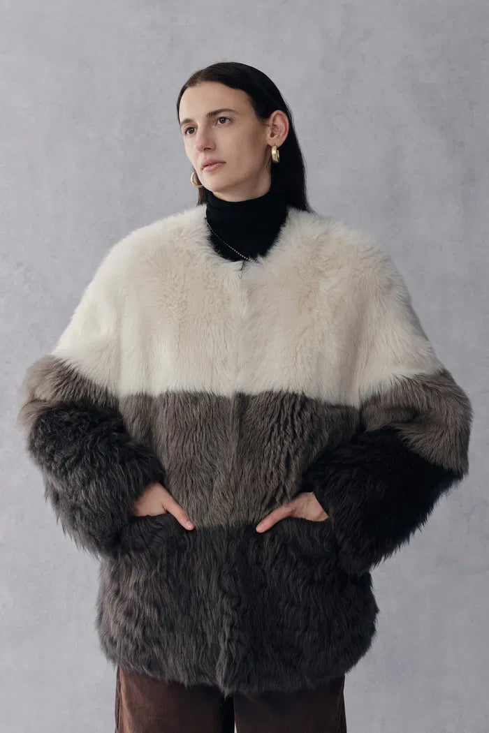 Jessie Leather Trim Color Block Wool Fur in Italian Sourced Sheep Fur