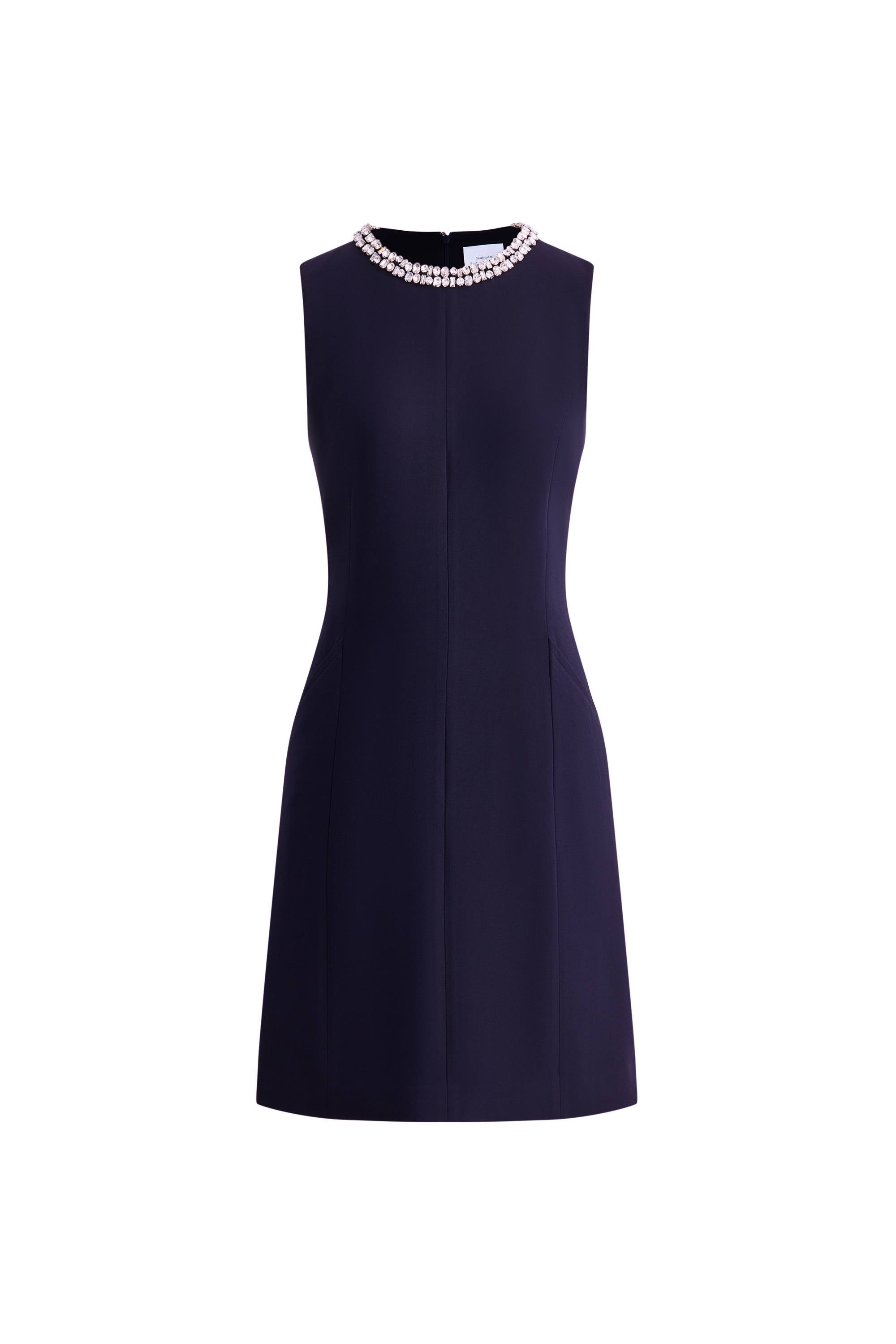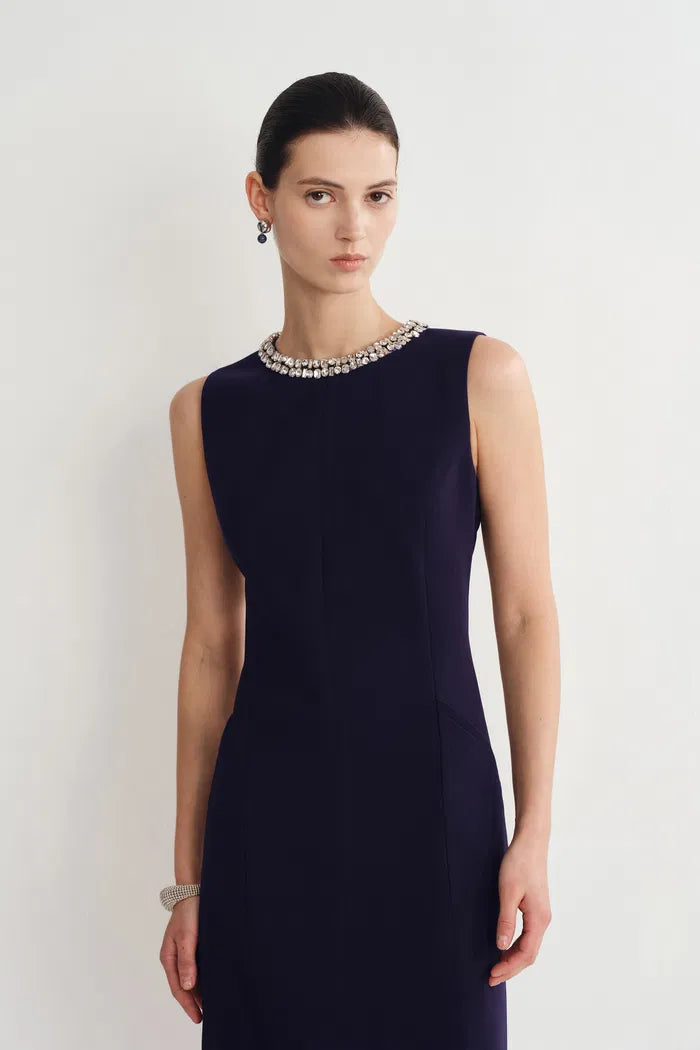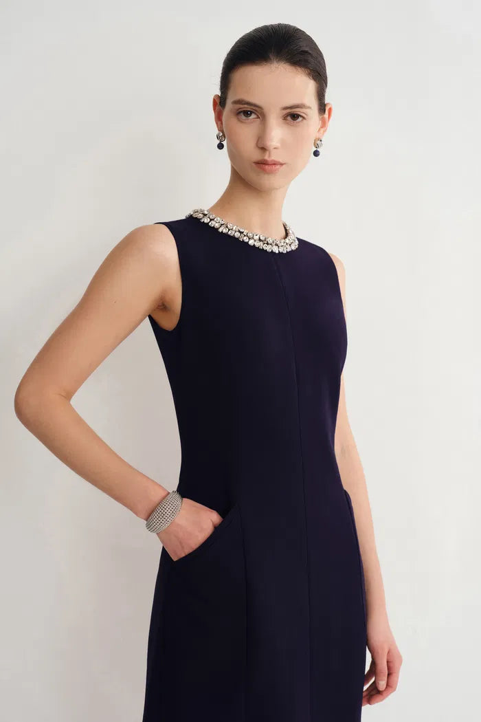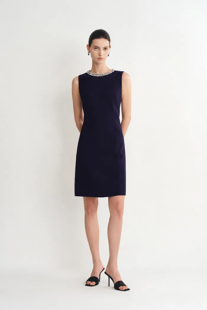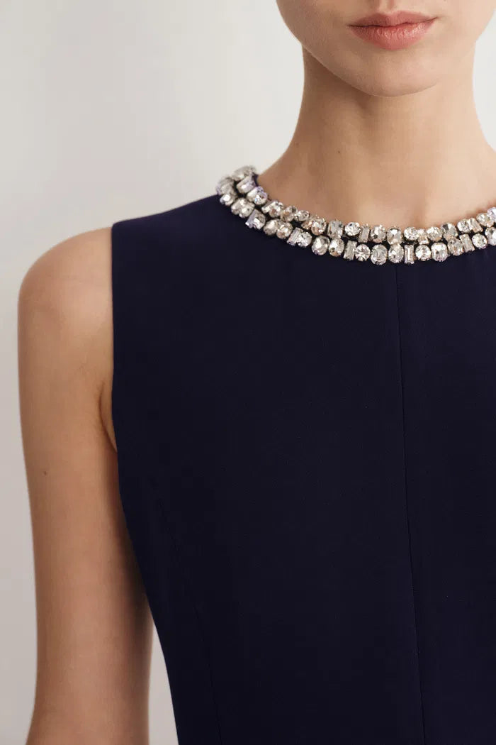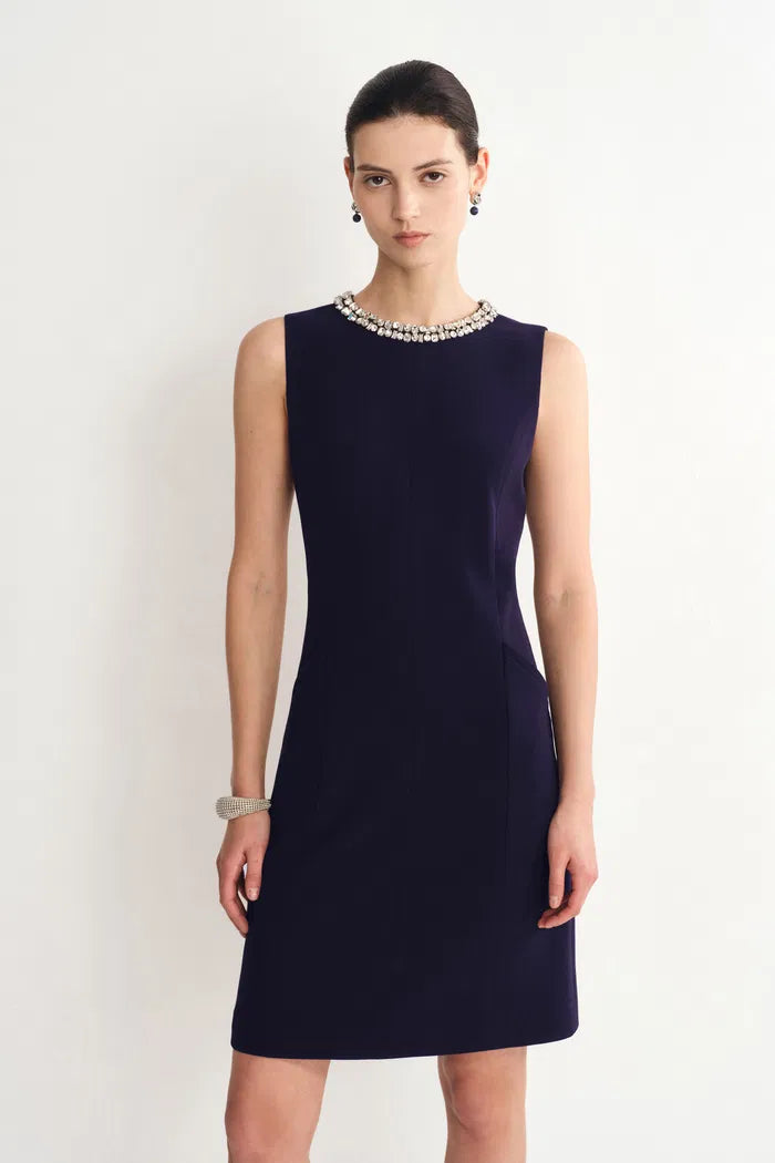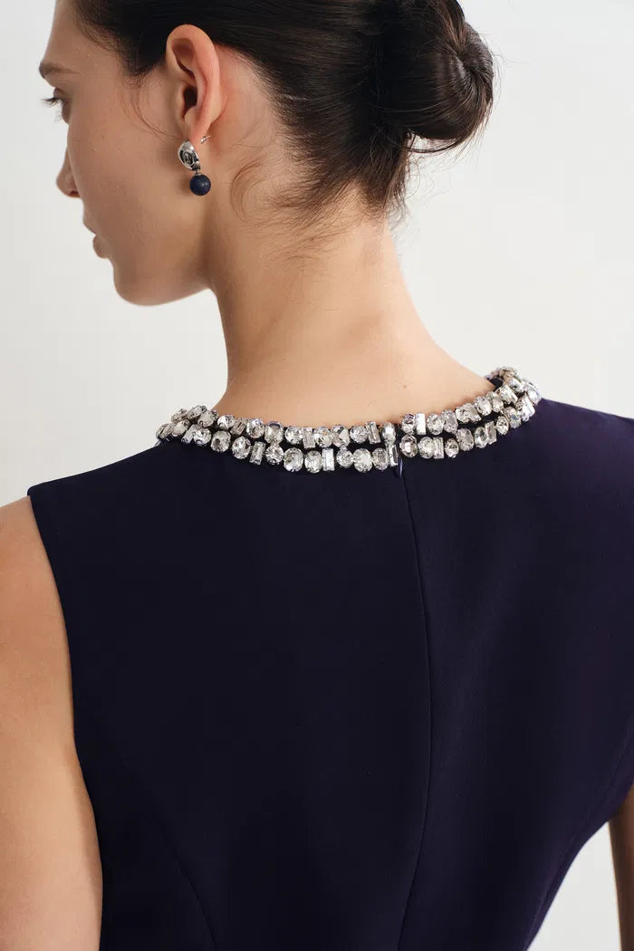 Joanne Jeweled Collar Sleeveless Dress Acetate Blend