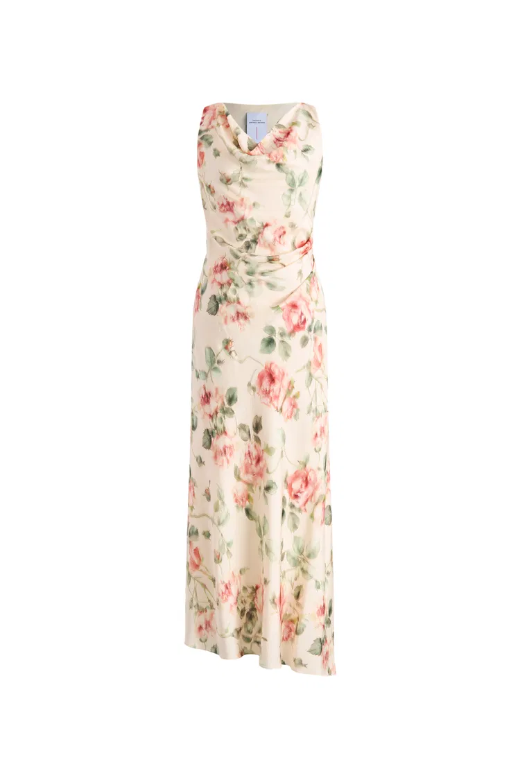 Juliet Flora Cowl Neck Sleeveless Dress in Mulberry Silk