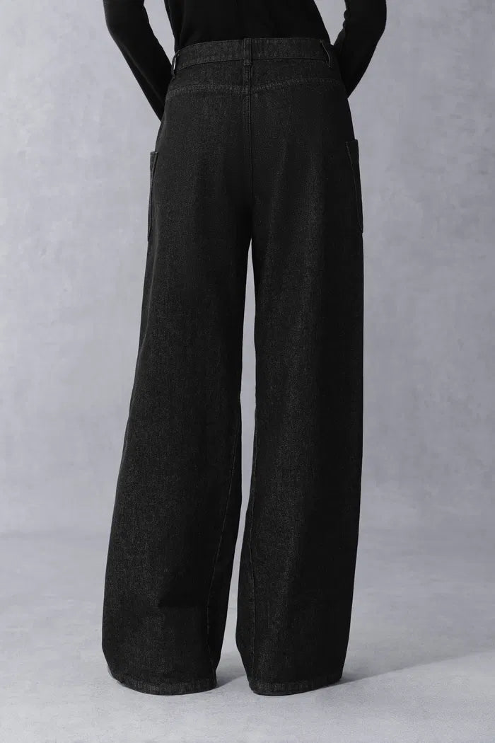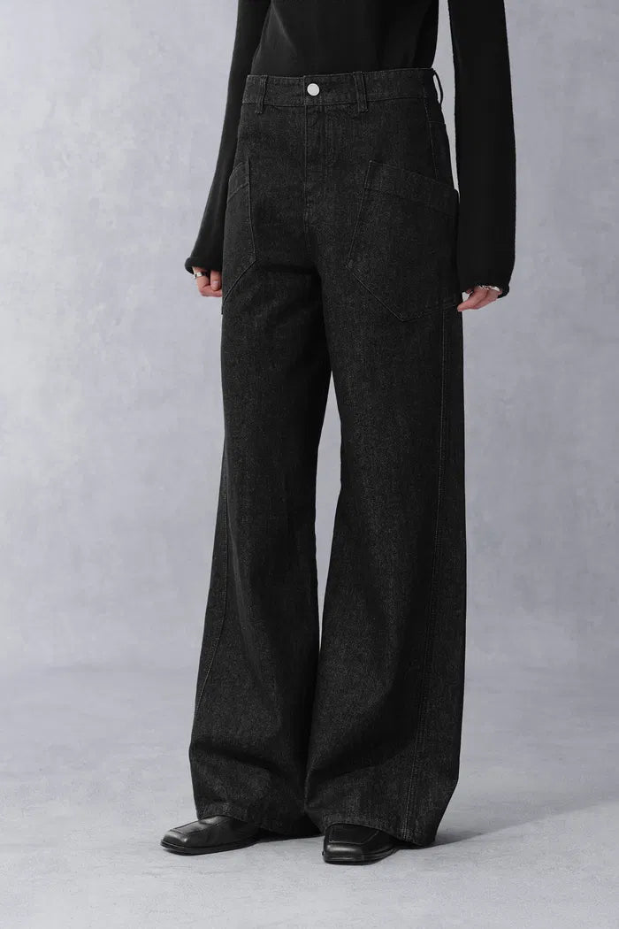 Junon Tilted Pocket Wide Straight Jeans in Cotton Denim