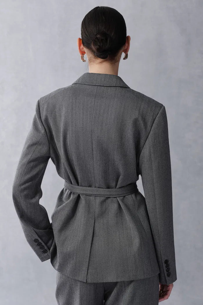 Kano Single Button Tie Waist Blazer in Fine Wool Blend