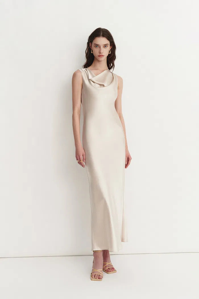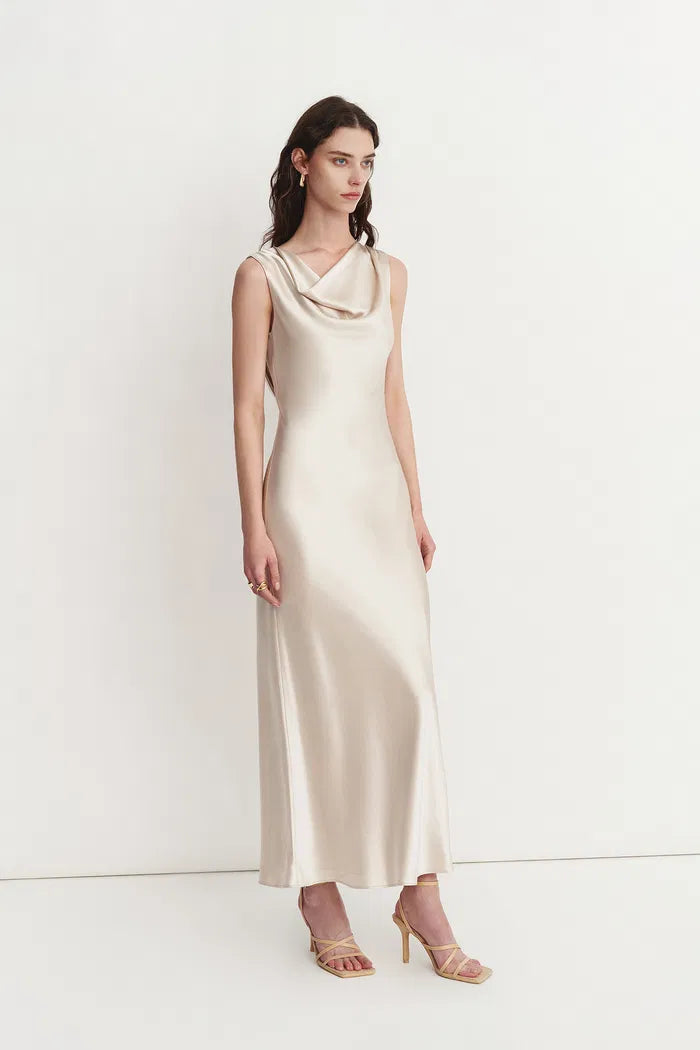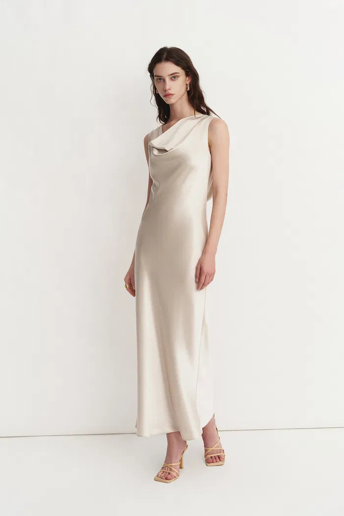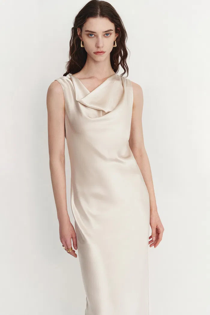 Kari Sleeveless Square Neck Dress in Lustrous Acetate