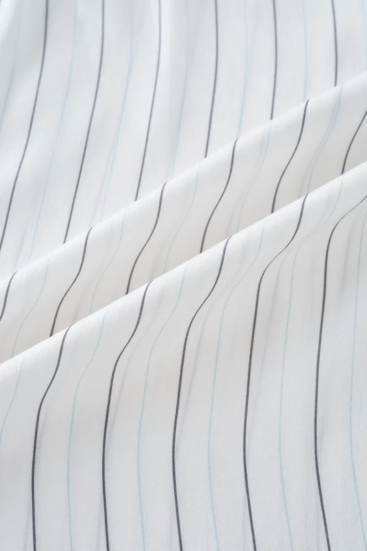 Karo Neck Tie Striped Long Sleeve Blouse in Silk Crepe