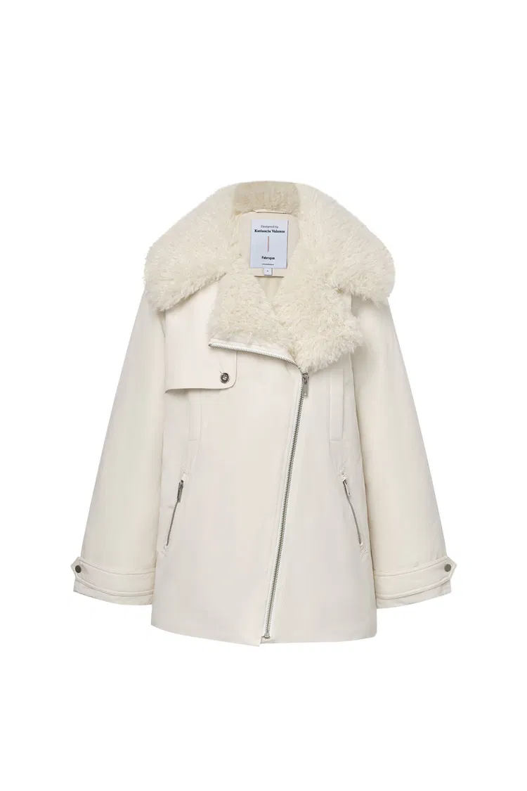 Kat White Water-Repellent Goose Down Fur Jacket in Cotton-like Fabric