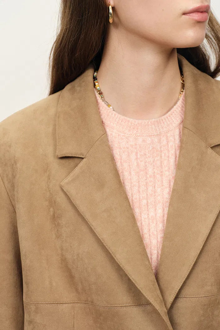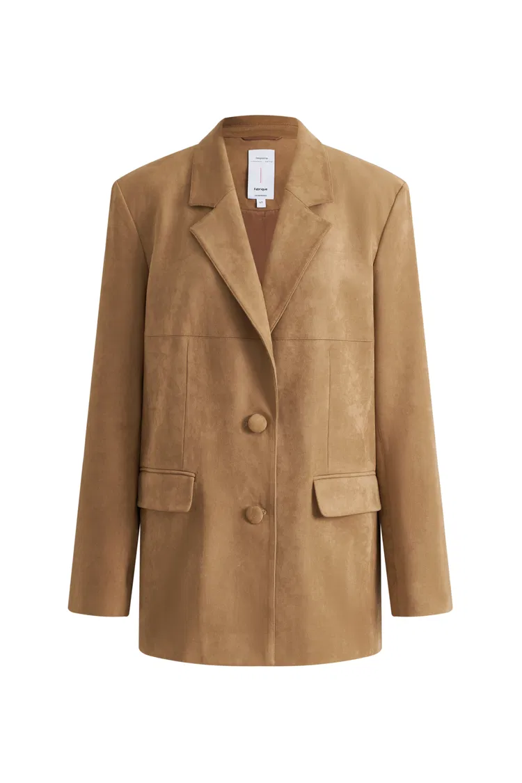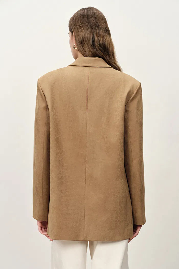 Kendall Straight Notched Lapel Blazer in Faux Suede
